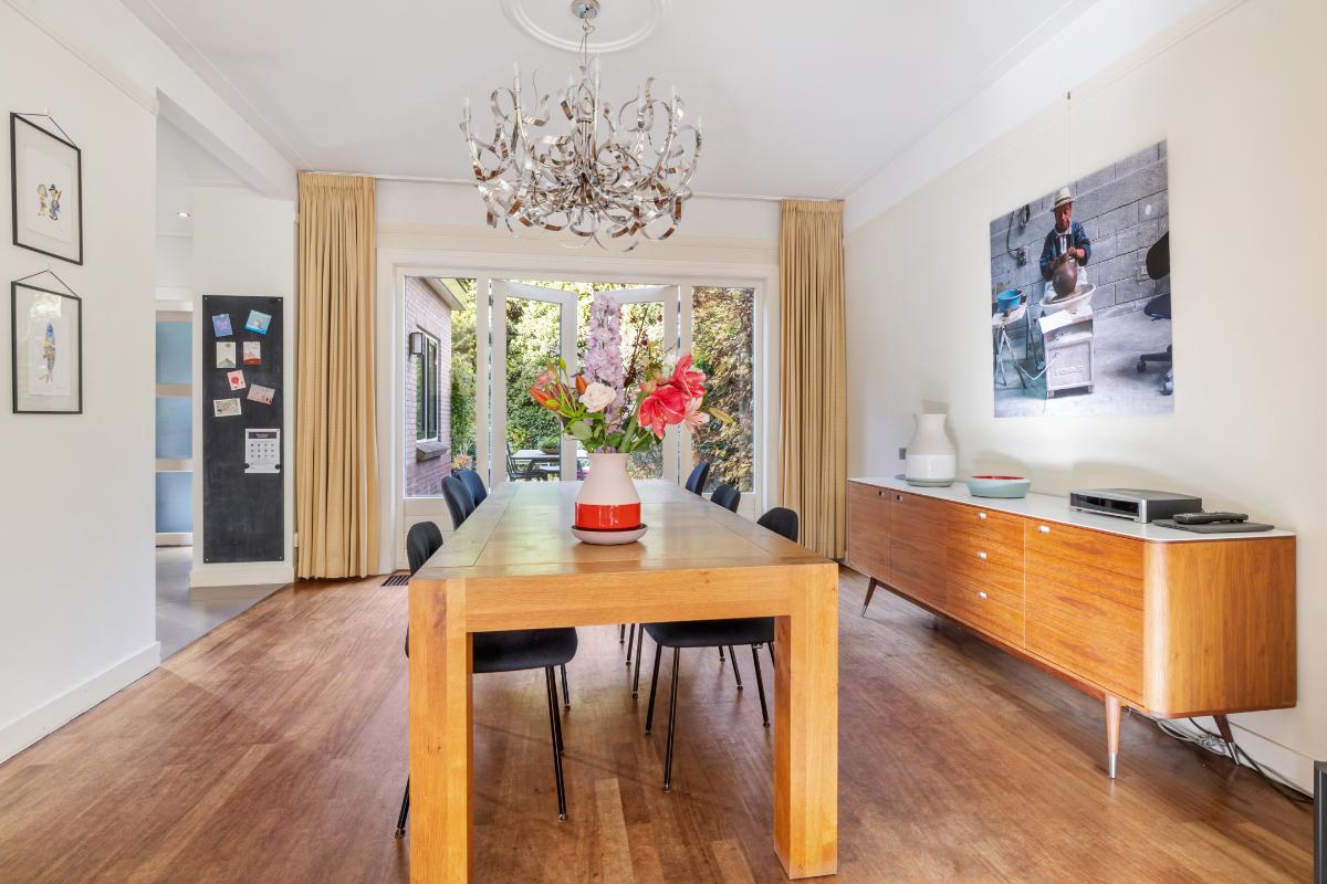 Aan een rustige en kindvriendelijke laan in de gewilde wijk het Brediuskwartier ligt dit royale en charmante uitgebouwde 30-er jaren hoekhuis met oprit, goede voortuin en achtertuin met veel privacy. Het Brediuskwartier is bekend en gewild om zijn vele ‘groen’, een speelweide, plantsoenen en waterpartijen en de gunstige ligging t.o.v kinderopvang, scholen, sportvelden en NS Station Naarden-Bussum. Deze ideale gezinsvilla beschikt over vijf goede slaapkamers en twee badkamers.