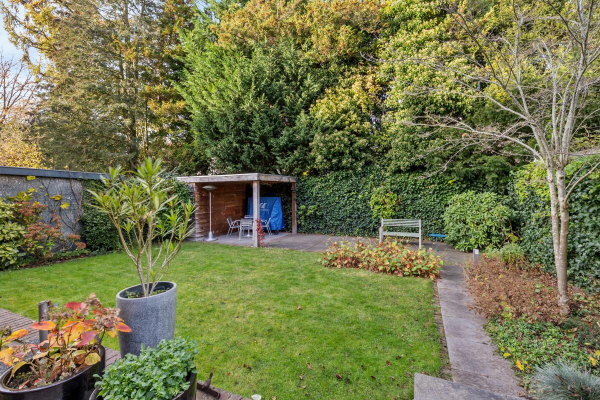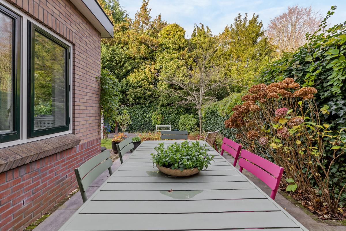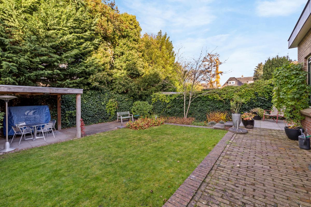 Tuin en oprit: • Ruime oprit aan de voorzijde • De voortuin is voorzien van een fietsenschuur • De besloten achtertuin biedt veel zon en privacy en beschikt over meerdere terrassen en een overkapping. • Beide tuinen zijn onderhoudsvriendelijk ingericht