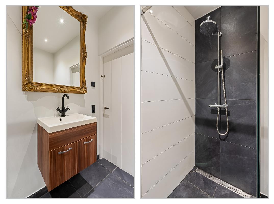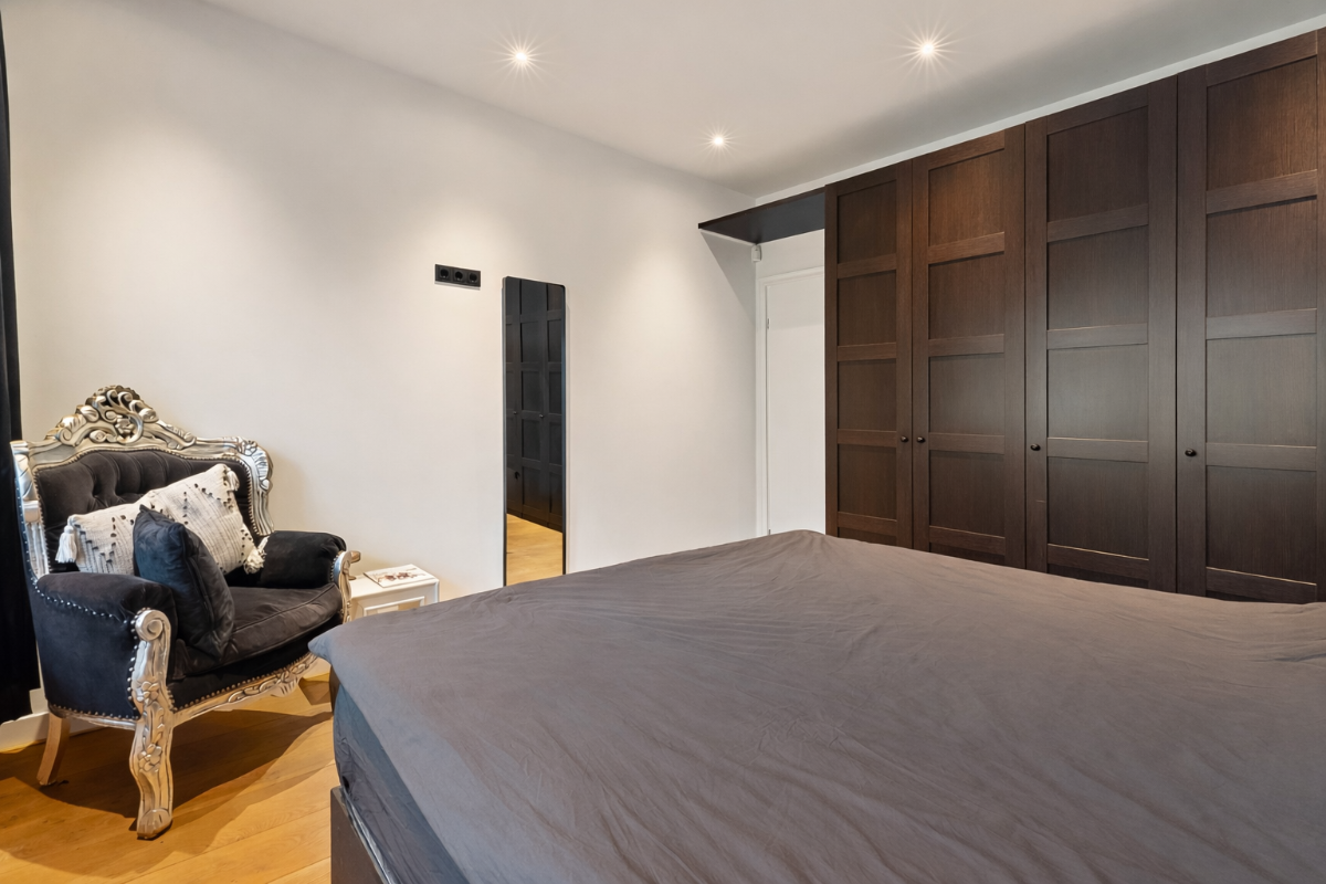 Aan de voorzijde van het appartement bevinden zich 2 slaapkamers. De hoofdslaapkamer is voorzien van een grote inbouw-kastenwand. De 2e slaapkamer is voorzien van een kastenwand met een ingebouwd opklap stapelbed. De moderne badkamer is voorzien van vloerverwarming, een riante inloopdouche, wastafelmeubel, een toilet en een handdoekradiator. De badkamer is mechanisch geventileerd.