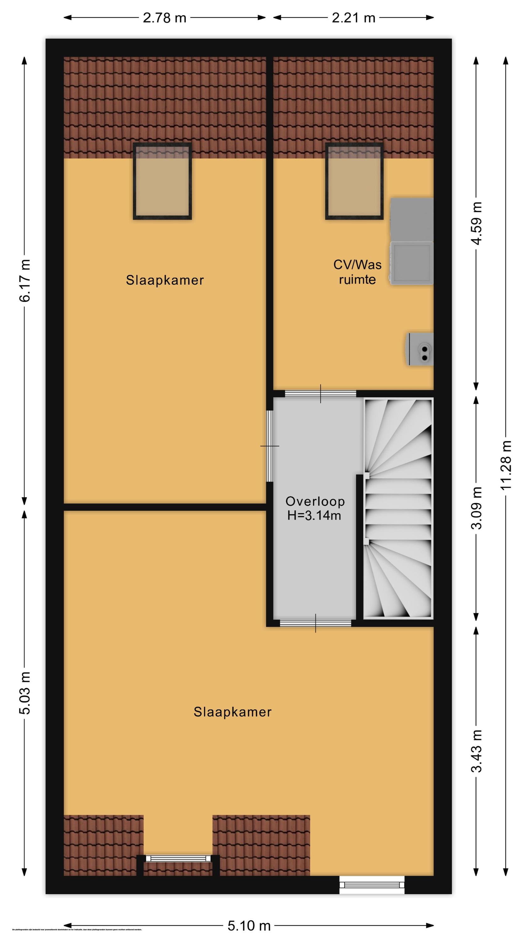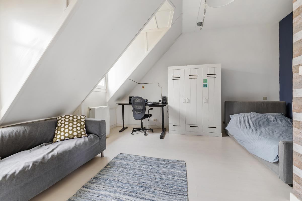 2e verdieping: Via vaste trap bereikbare zeer royale zolderetage met overloop. De zolder heeft 2 ruime slaapkamers en een technische ruimte met de aansluitingen voor wasmachine, droger, c.v. ketel en mechanische ventilatie. In deze ruimte kan desgewenst nog een 2e badkamer worden aangebracht. De zolderverdieping heeft mooie hoge plafonds.