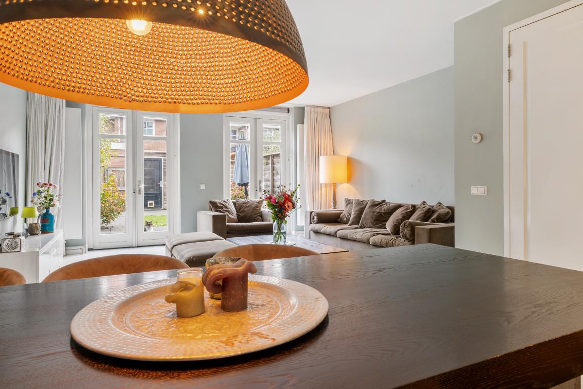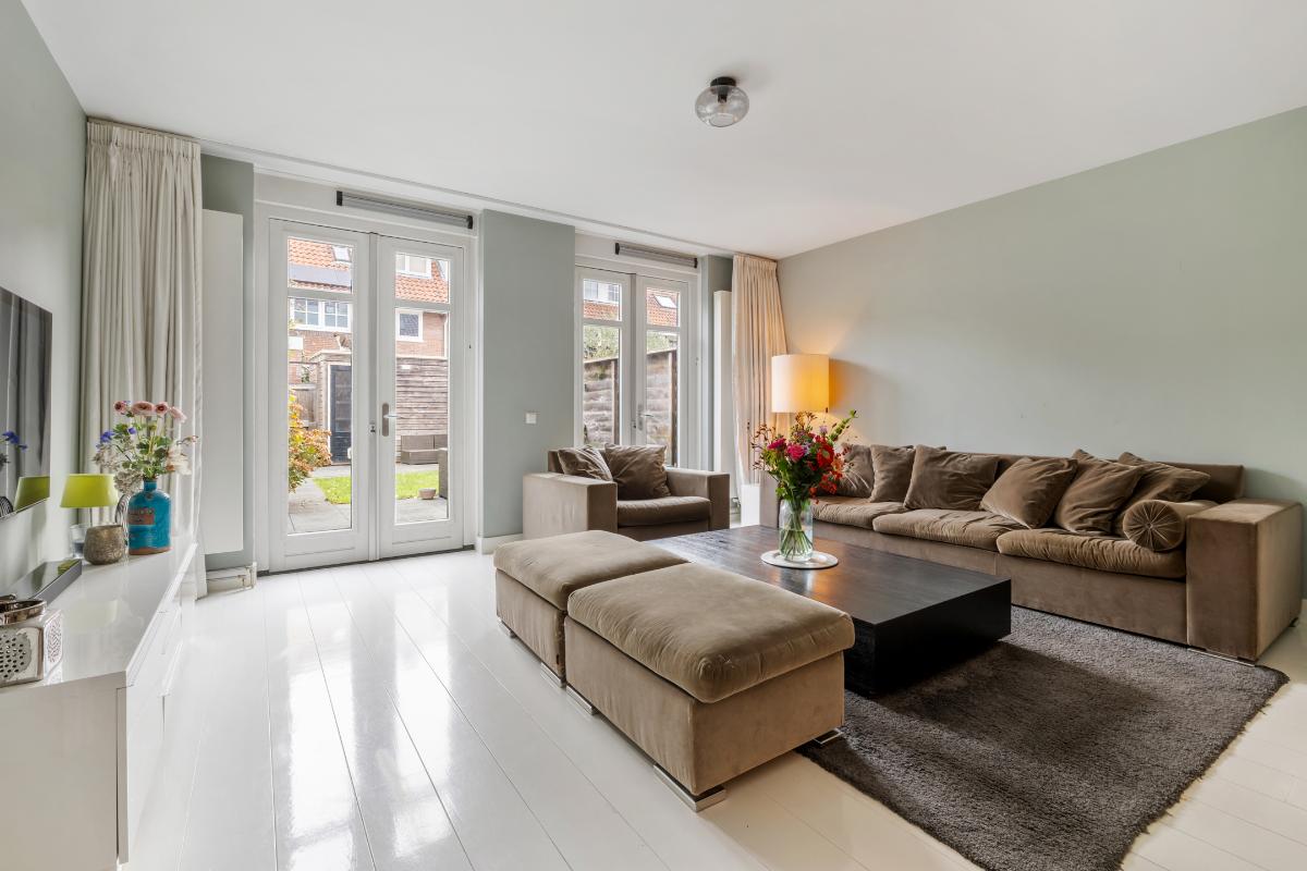 Tuin: De achtertuin is op het oosten gesitueerd en fungeert als een verlenging van de woonkamer en sluit hier met dubbel openslaande deuren mooi op aan. Er is een schuur die is voorzien van elektra en er is een achterom.