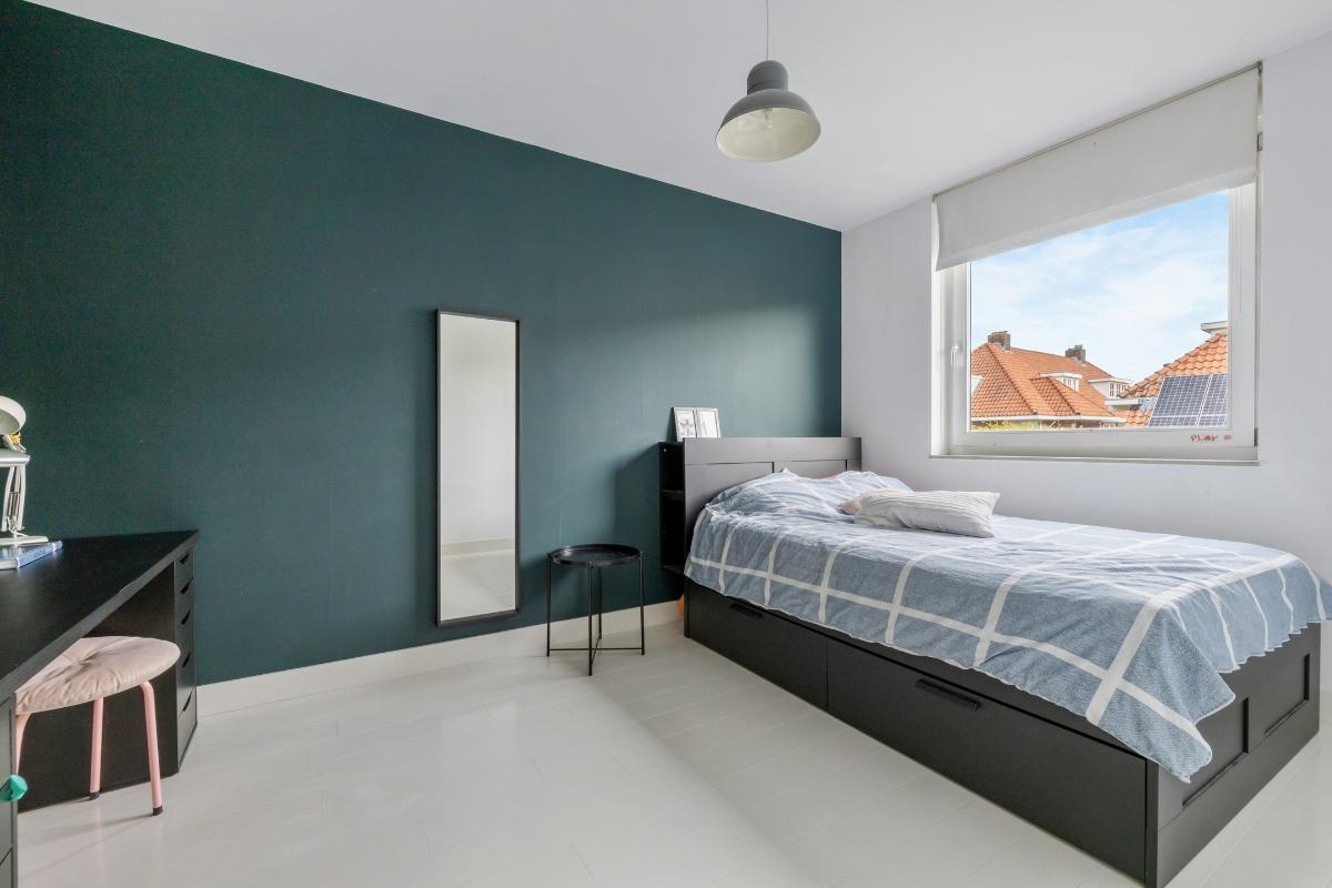1e verdieping: Overloop, royale slaapkamer aan de voorzijde, Tweede zeer royale slaapkamer en een derde kleinere slaapkamer aan de achterzijde. Luxe badkamer voorzien van vloerverwarming, grote inloopdouche met regendouche, ligbad, dubbele wastafel en een apart toilet met fontein dat tevens is voorzien van vloerverwarming. Ook de 1e verdieping is voorzien van een wit gelakte eiken delen vloer.