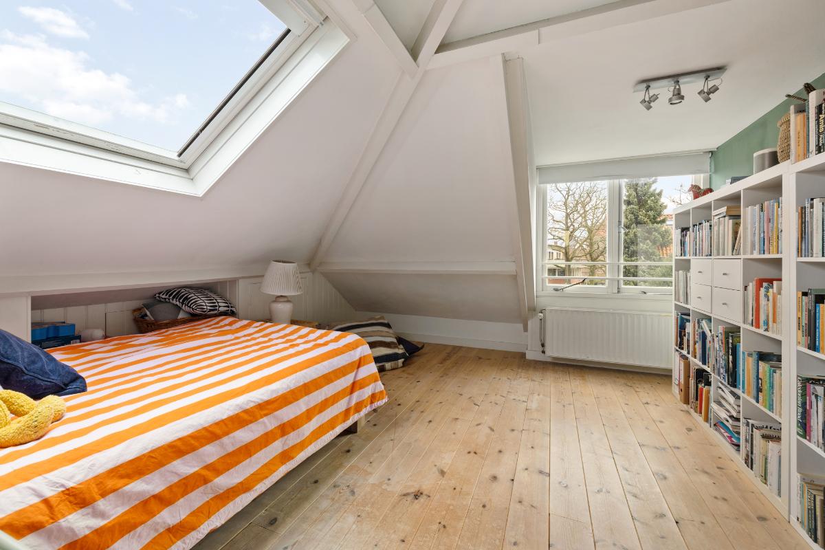 2e Verdieping: Via een vaste trap is de zolderverdieping bereikbaar. hier is een overloop met een wastafel, bergkast en c.v. ruimte, een grote slaapkamer aan de achterzijde met een extra dakvenster en een kleinere slaapkamer die momenteel in gebruik is als werkkamer.