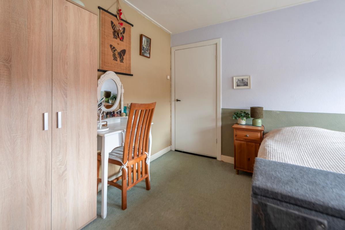 Vliering: Via een luik in de badkamer en een vlizotrap is een grote bergvliering bereikbaar. Deze vliering heeft een oppervlakte van ca. 22 m² en is iets minder dan 1 meter hoog.