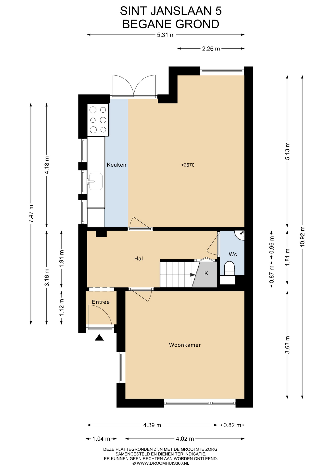 Begane grond: Entree, vestibule, ruime hal in het midden van het huis, aan de voorzijde bevindt zicht de woonkamer. De woonkamer is geheel voorzien van tripple glas. Er is nog een kanaal aanwezig om eventueel een houtkachel aan te sluiten. Doordat er aan twee zijden ramen zijn is de woonkamer heerlijk licht. Aan de achterzijde bevindt zich de grote woonkeuken met een modern keukenblok met een groot fornuis met brede oven, afzuigkap, koel-vriescombinatie (hagel nieuw), vaatwasmachine, Quooker en een composiet stenen aanrechtblad. Aan de achterzijde zijn openslaande deuren naar de tuin. In de hal is een kelderkast en een ruim toilet met fontein. De woonkamer en de eetkeuken zijn voorzien van lamelparketvloeren en de wanden zijn glas gestuukt.