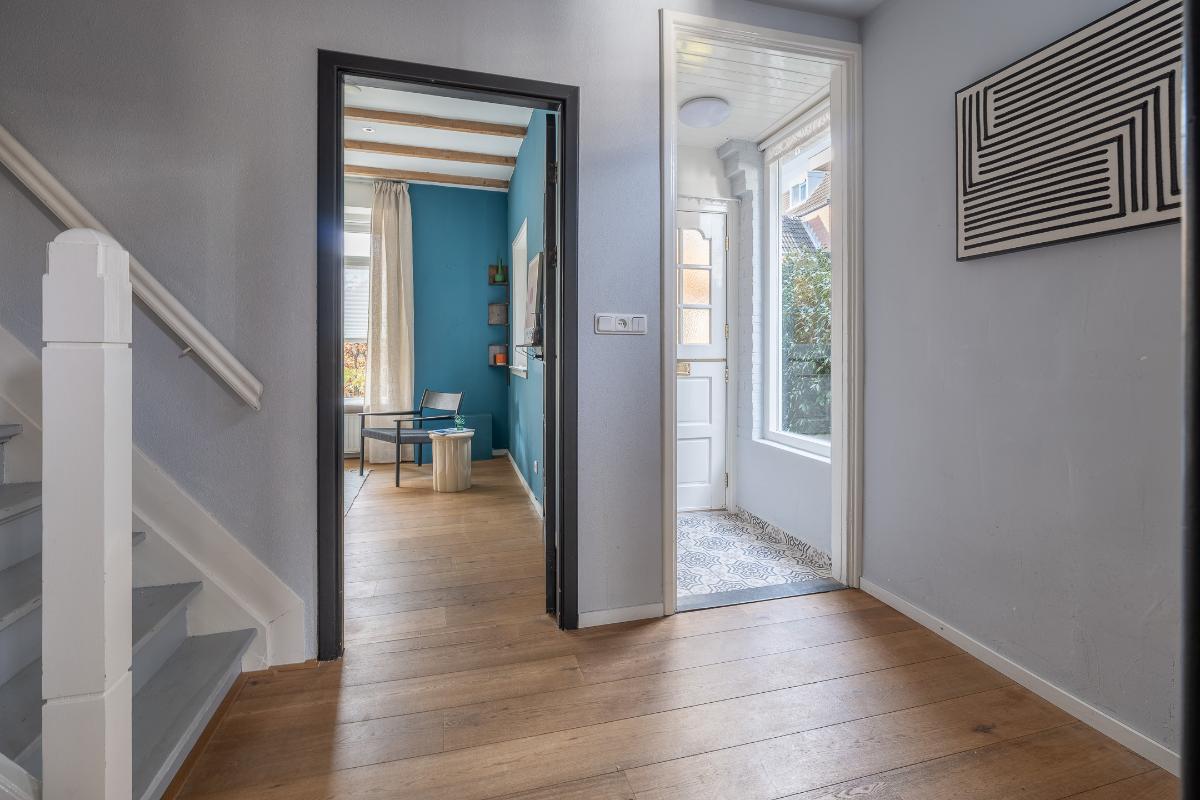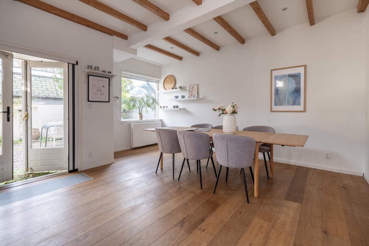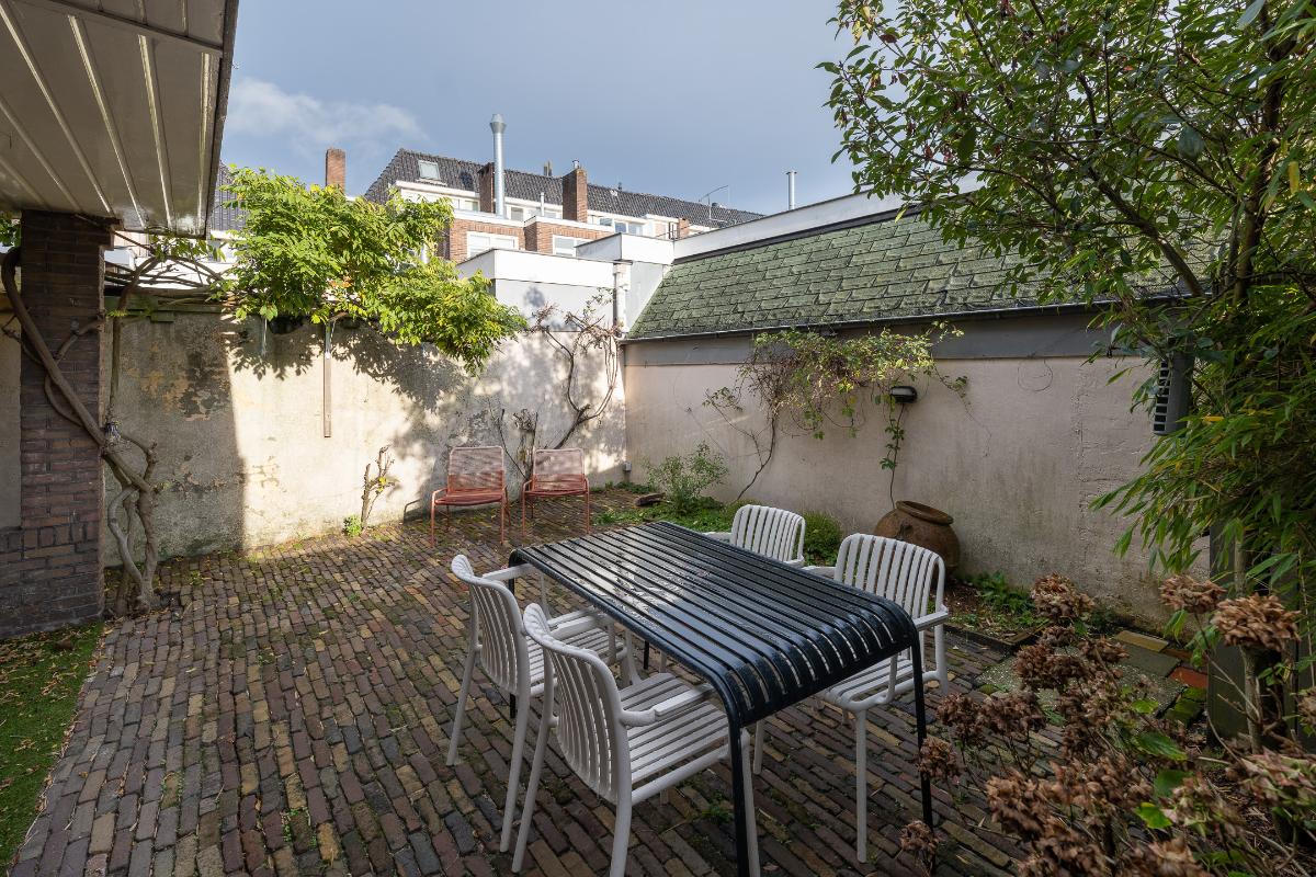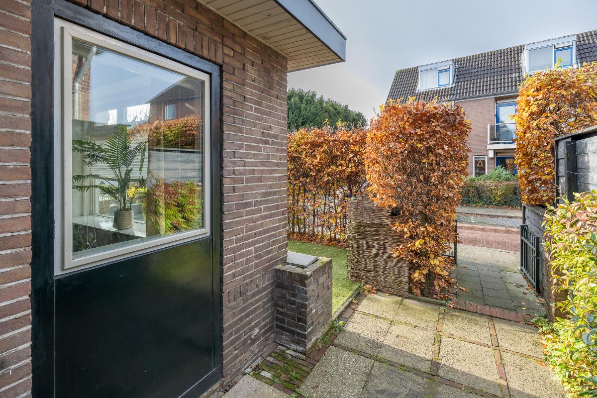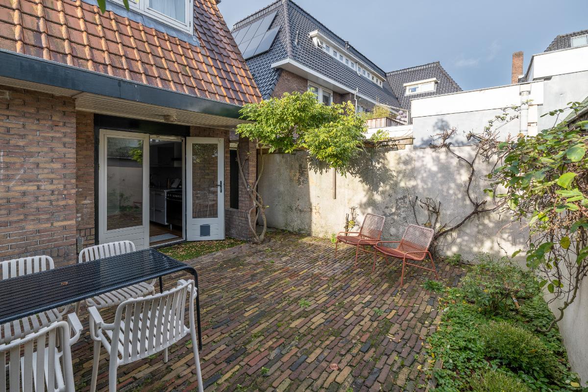 Tuin: De woning heeft een goede voortuin met een beukenhaag aanwezig die zorgt voor een prettige afstand tot de straat en geeft de nodige privacy. Via een poort aan de zijkant van het huis is de achtertuin bereikbaar die bestraat is met oude klinkers en veel privacy geeft.