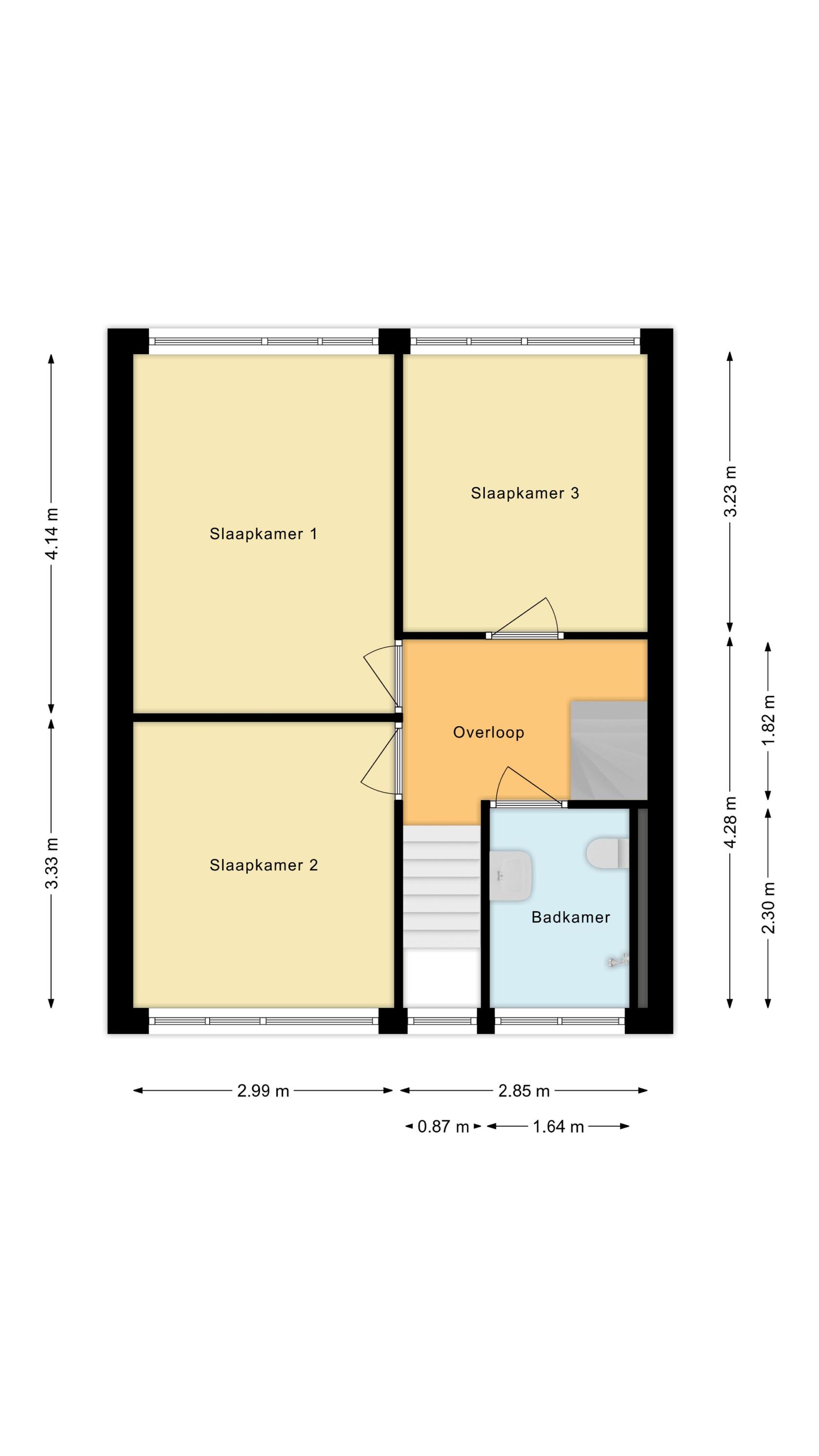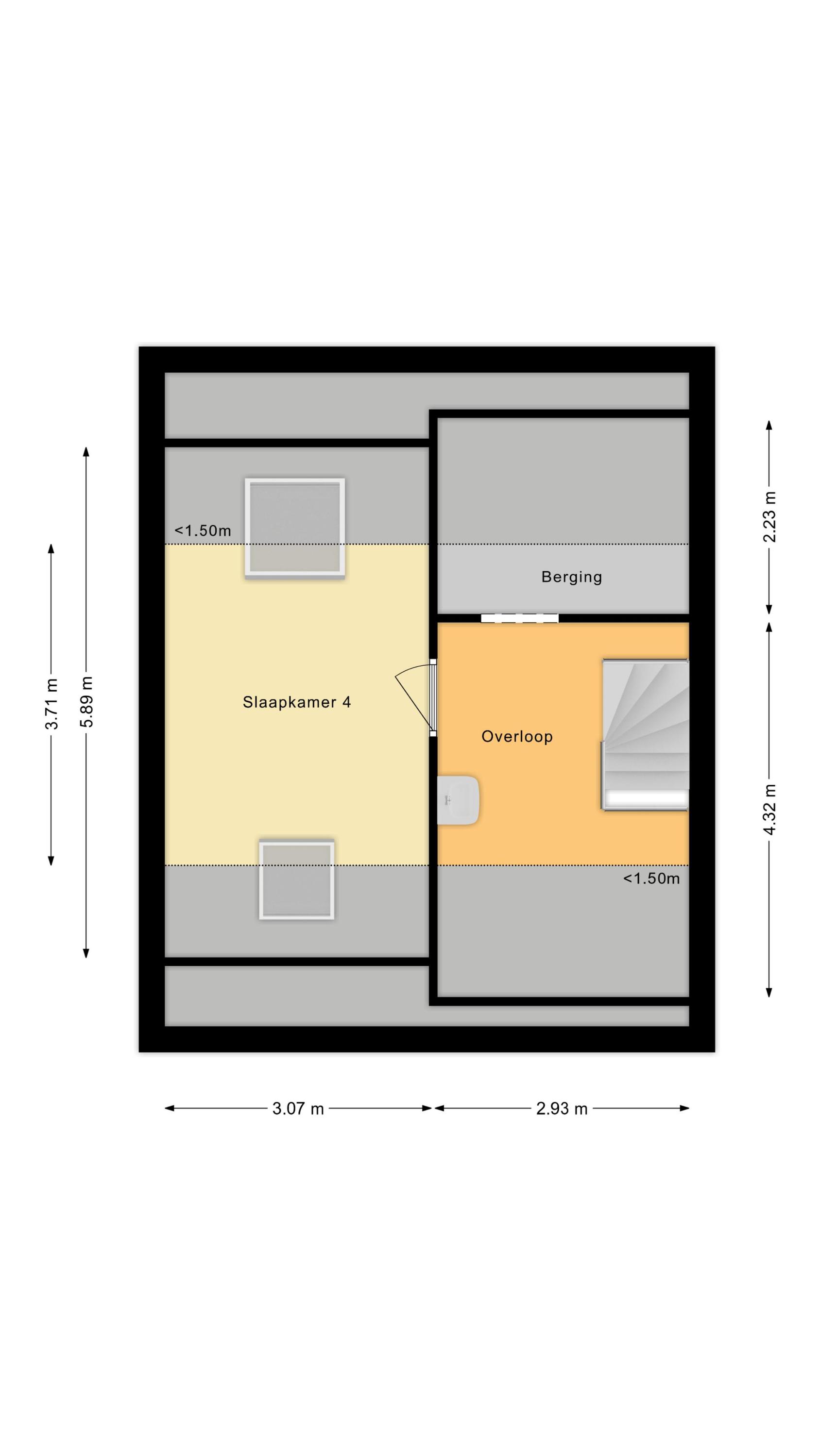 Op de verdieping bevinden zich drie ruime slaapkamers en de badkamer met douche, toilet en wastafel. Via een vaste trap bereik je de zolder met ruimte overloop, diverse bergruimte en de vierde slaapkamer.