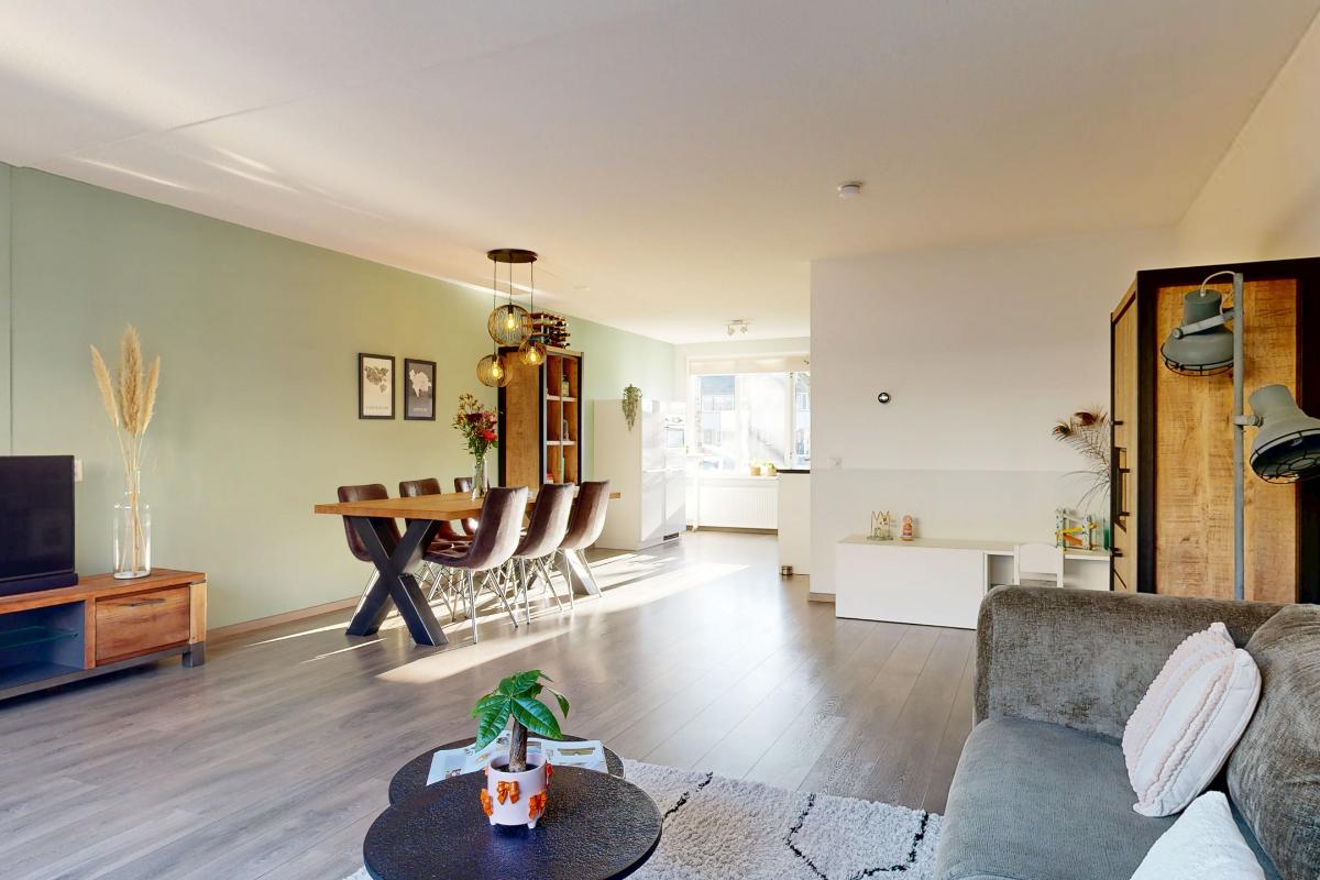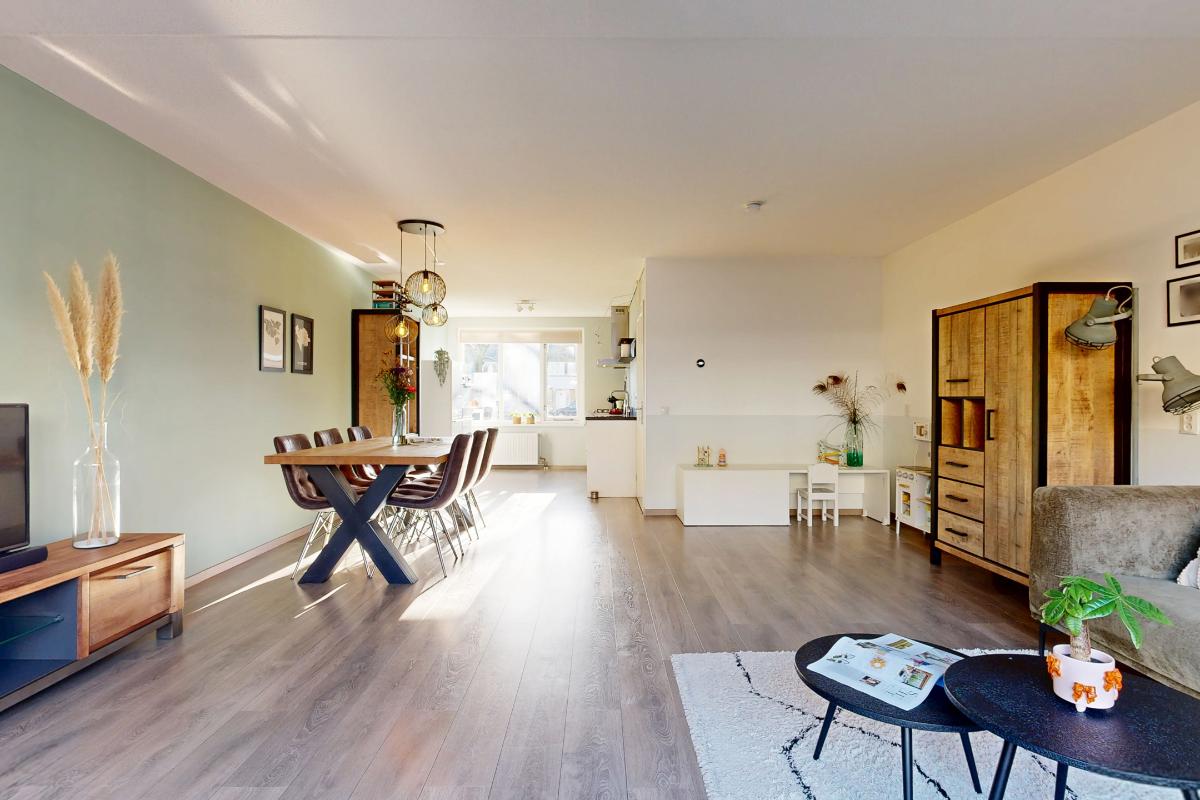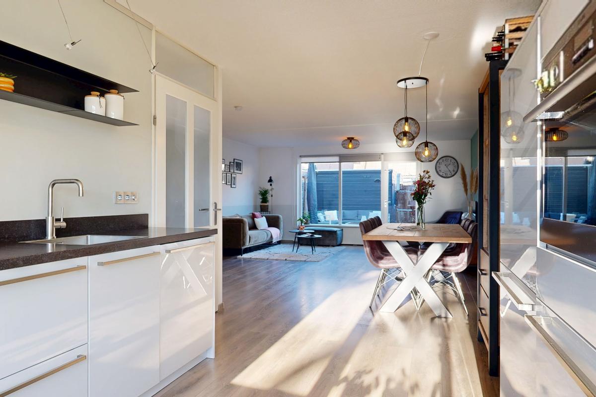 Via de voortuin op het zuiden, ideaal voor een gezellig zitje, bereik je de entree. In de hal tref je het toilet, praktische bergruimte en de trap naar boven. De lichte keuken ligt aan de voorzijde en is voorzien van alle gewenste inbouwapparatuur, met een groot raam voor veel daglicht. De uitgebouwde woonkamer biedt een ruime zithoek én een apart eetgedeelte. De grote raampartij aan de achterzijde en de deur naar de tuin maken deze leefruimte extra prettig en verbonden met buiten.