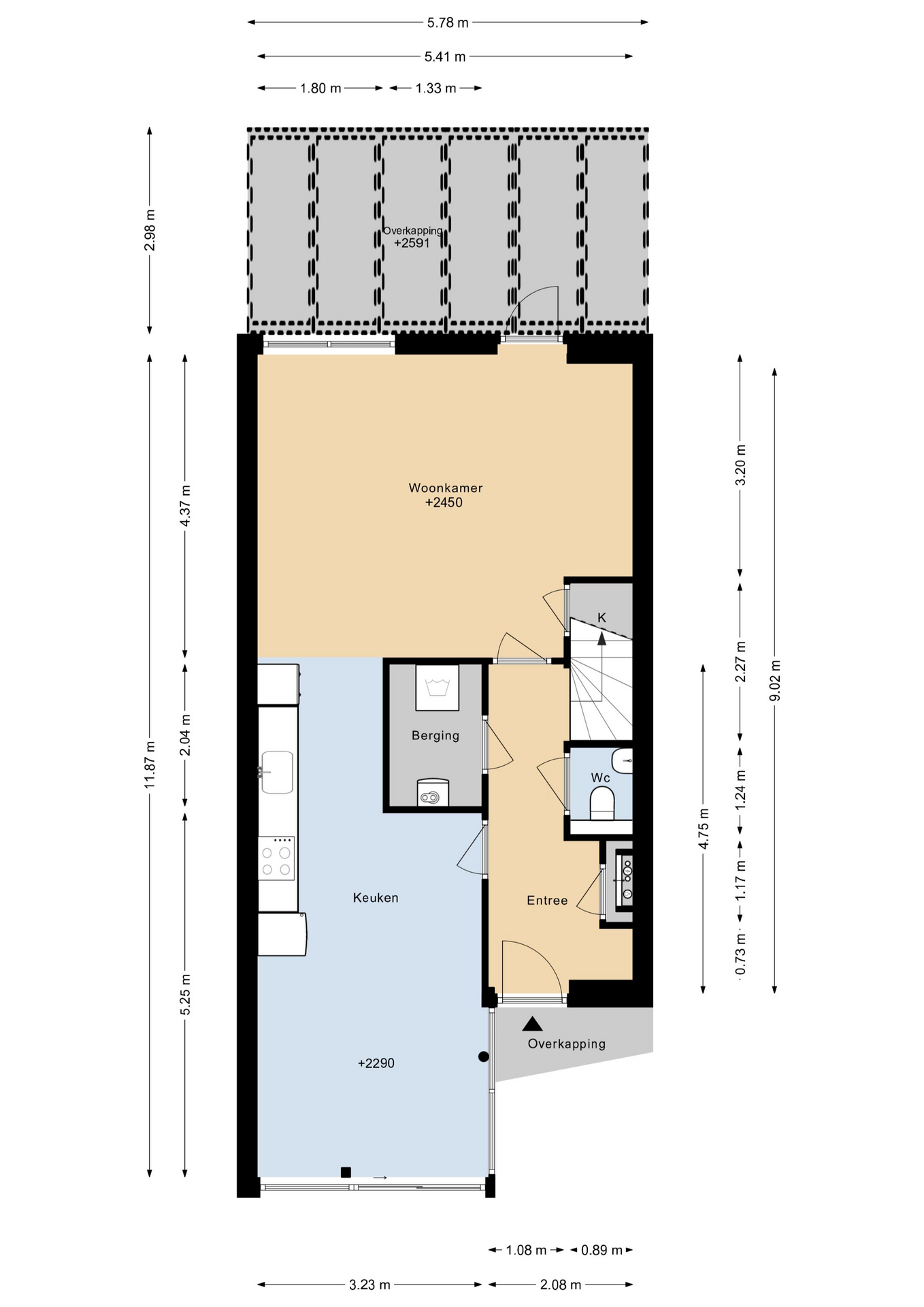 Via de entree kom je in de hal met garderobe, meterkast, trapopgang, een nette toiletruimte met fontein en een inpandige c.v./bergruimte met wasmachineaansluiting. De sfeervolle woonkamer is voorzien van een praktische trapkast en een deur naar de achtertuin. De woonkamer en keuken zijn afgewerkt met een grijze plavuizen vloer met vloerverwarming.
