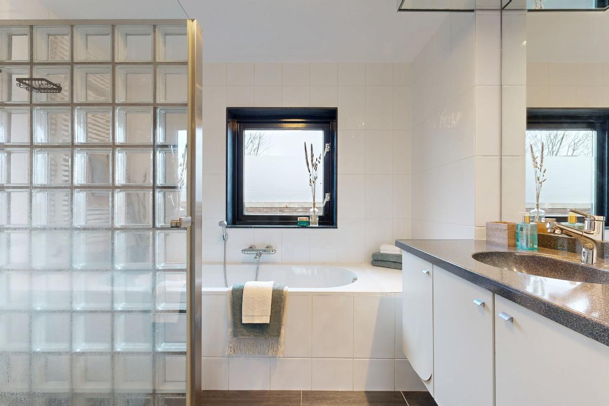 Op de verdieping geeft de ruime overloop toegang tot een separaat toilet, twee slaapkamers aan de achterzijde en een ruime slaapkamer aan de voorzijde met directe toegang tot het zonnige dakterras. De moderne badkamer is uitgerust met een wastafel, ligbad en inloopdouche.