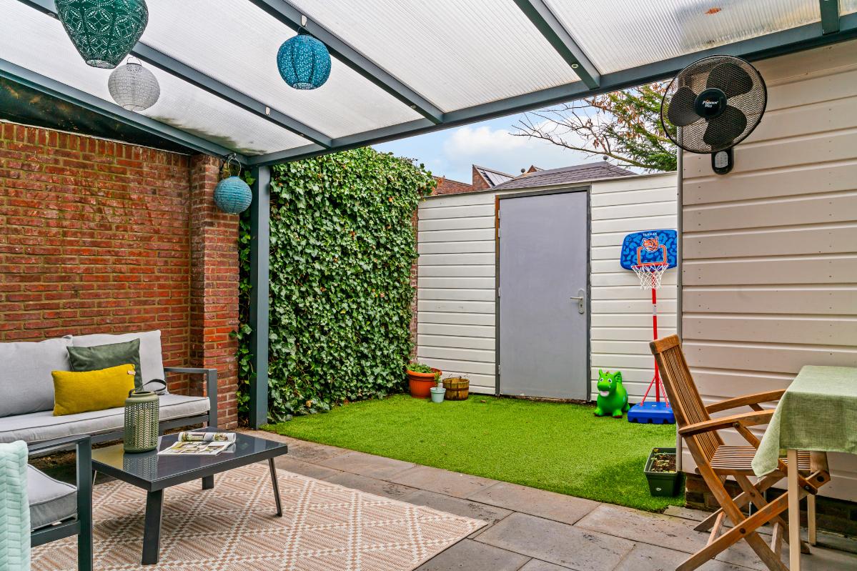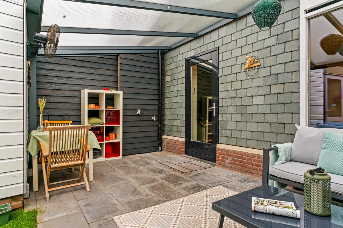 De woning beschikt over een keurig aangelegde voortuin op het zuiden waar je heerlijk kunt zitten. De achtertuin is bereikbaar via de woonkamer en is voorzien van een mooie overkapping, waardoor je ook bij minder goed weer comfortabel buiten kunt verblijven. Daarnaast beschikt de tuin over een achterom en een vrijstaande houten berging.