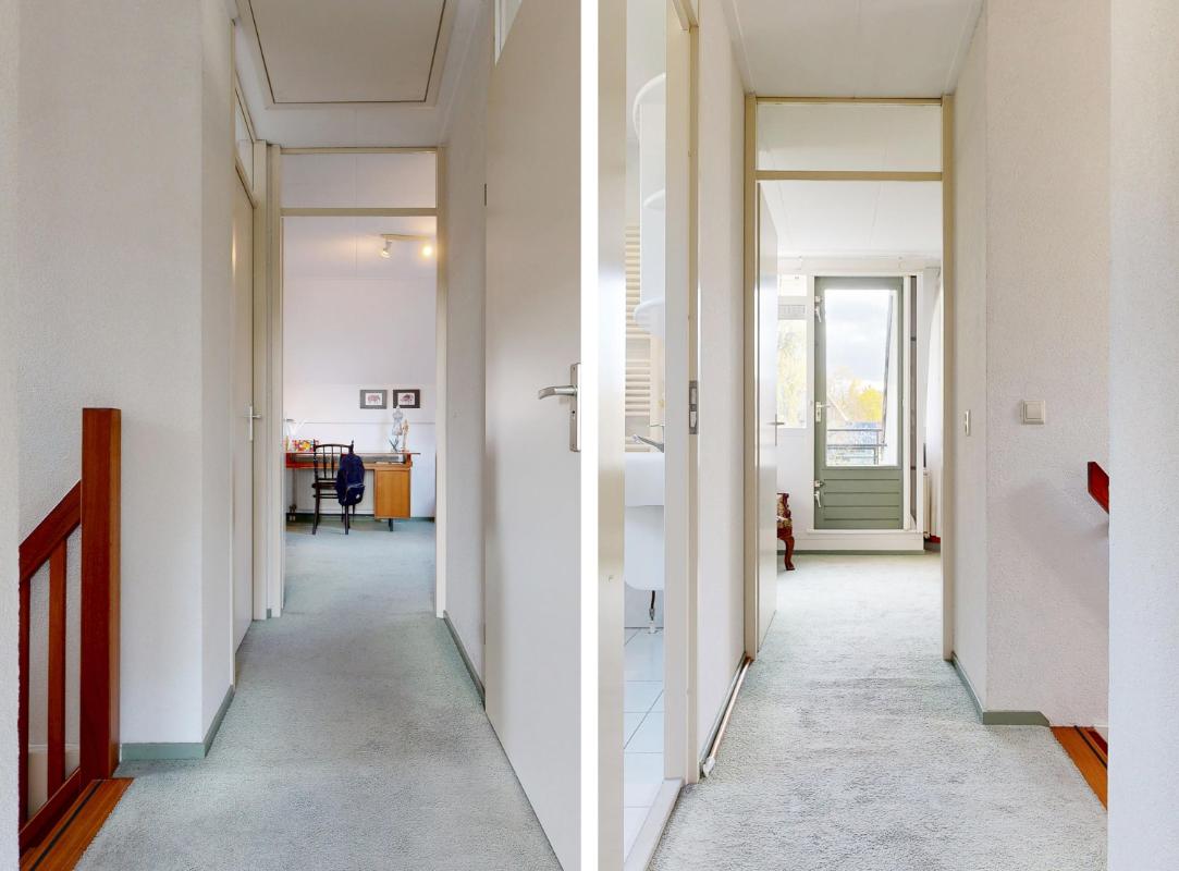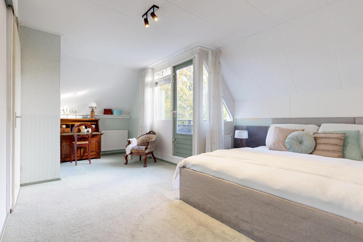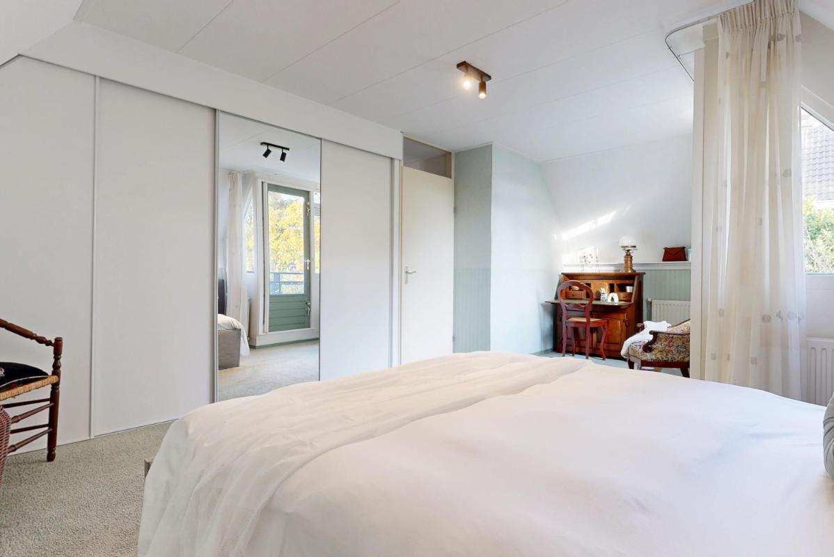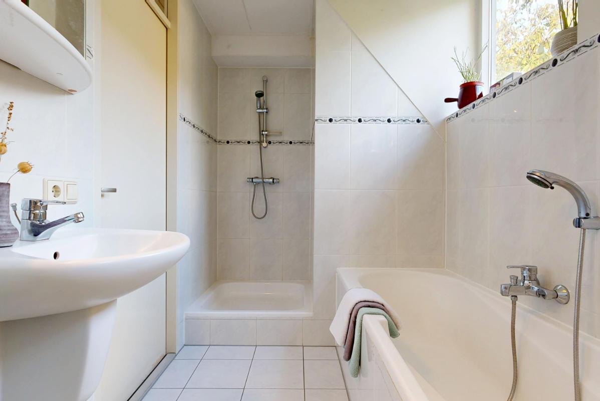 Vanuit de trap in de entree bereik je de eerste verdieping: hier tref je een royale slaapkamer met balkon en handige inbouwkast aan de achterzijde, plus twee comfortabele slaapkamers aan de voorzijde. De badkamer is compleet met douche, ligbad, dubbele wastafel en toilet. Hiernaast beschikt deze woning ook nog over een vliering die een zee aan bergruimte biedt en flexibel in te richten is, bijvoorbeeld als hobbyruimte of extra opslag.