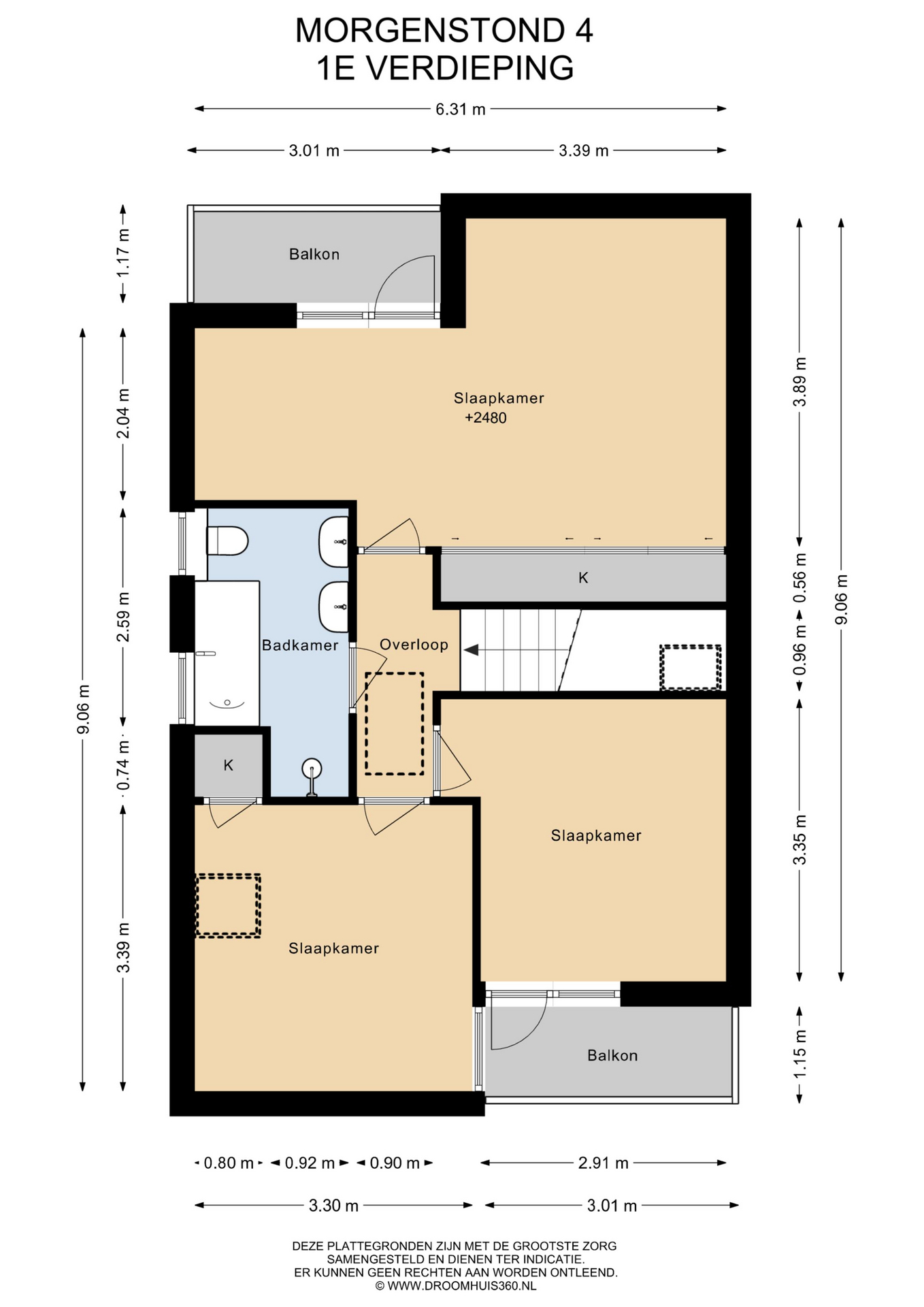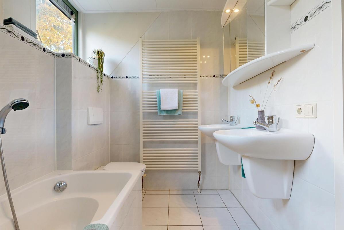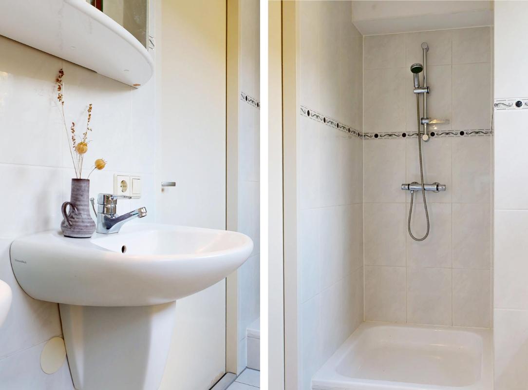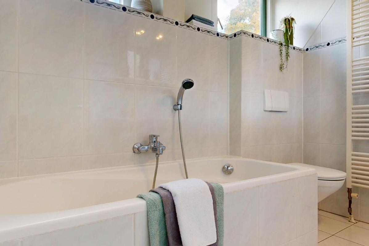 Vanuit de trap in de entree bereik je de eerste verdieping: hier tref je een royale slaapkamer met balkon en handige inbouwkast aan de achterzijde, plus twee comfortabele slaapkamers aan de voorzijde. De badkamer is compleet met douche, ligbad, dubbele wastafel en toilet. Hiernaast beschikt deze woning ook nog over een vliering die een zee aan bergruimte biedt en flexibel in te richten is, bijvoorbeeld als hobbyruimte of extra opslag.