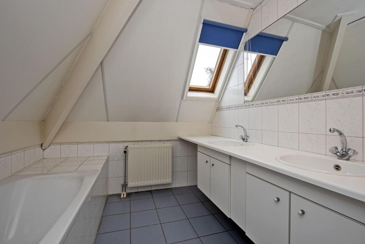 De eerste verdieping is voorzien van nog twee slaapkamers, een overloop én een tweede badkamer. De kamers hebben een prettig formaat en zijn flexibel in te delen. Of je nu extra slaapkamers nodig hebt, een werkplek of hobbyruimte zoekt, hier kan het. De tweede badkamer is voorzien van een ligbad, dubbele wastafel en toilet. Functioneel ingericht en praktisch voor dagelijks gebruik. Daarnaast beschikt de woning over een bergzolder, deze is te bereiken middels een vlizotrap. Perfect voor het opbergen van seizoensspullen en extra bergruimte.
