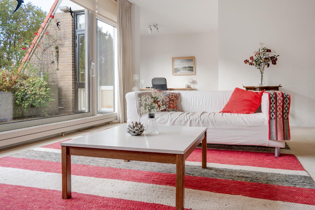 Licht, ruim en uitnodigend Het appartement heeft een verrassend lichte woonkamer met halfopen keuken en toegang tot het ruime balkon op het westen. Dankzij de grote raampartijen en de ligging op de bovenste verdieping geniet je volop van ruimte en rust. De halfopen keuken is praktisch ingedeeld en voorzien van diverse inbouwapparatuur. Verder beschikt het appartement over een ruime slaapkamer, een keurige badkamer met ligbad, douche, toilet en wastafelmeubel, en een separaat gastentoilet in de hal. Het royale balkon (ca. 17 m²) vormt het verlengstuk van de woonkamer – een heerlijke plek waar je vooral van de middag- en avondzon kunt genieten.