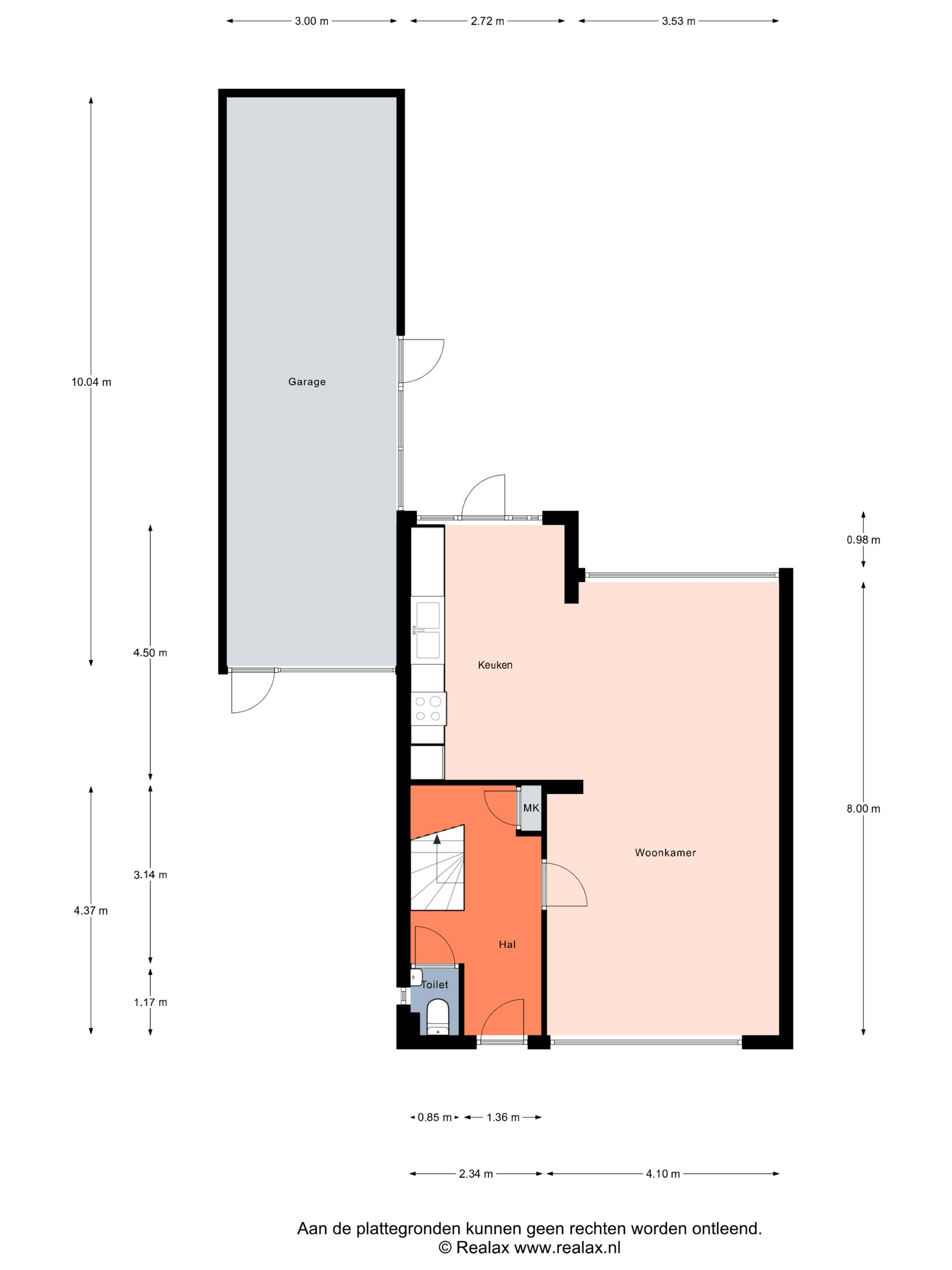 Begane grond: entree, hal met toilet, meterkast en trapopgang. Ruime woonkamer met veel lichtinval, open keuken met toegang tot de tuin. De aangebouwde stenen garage biedt volop bergruimte of hobbyruimte.
