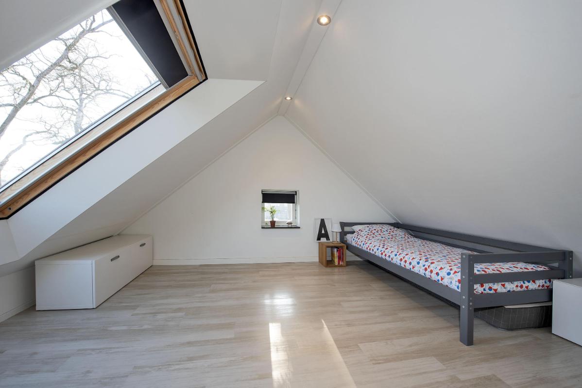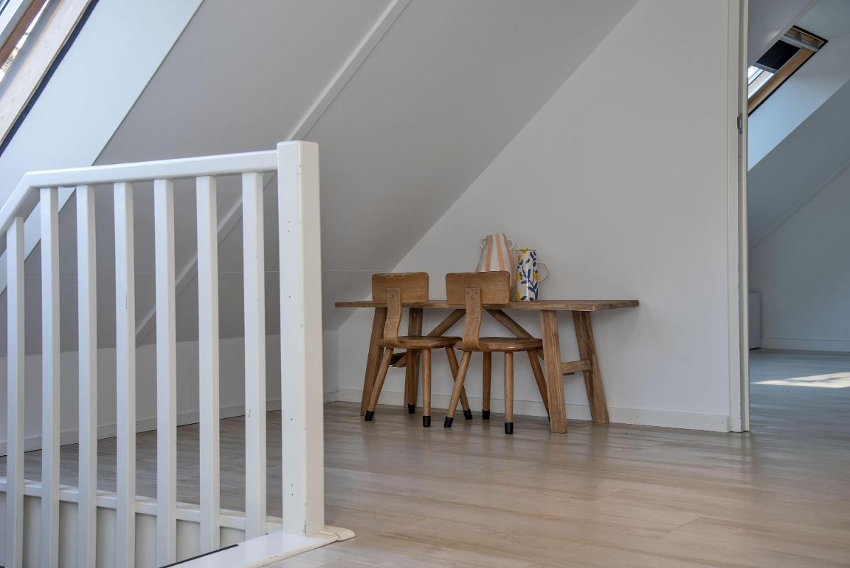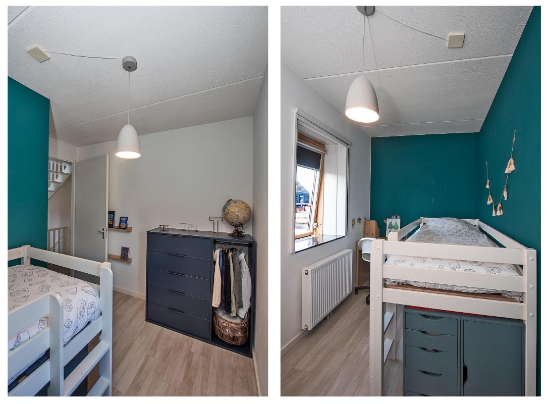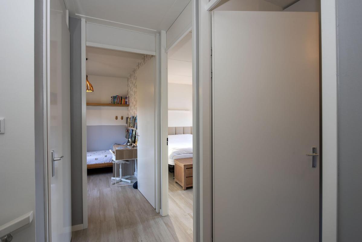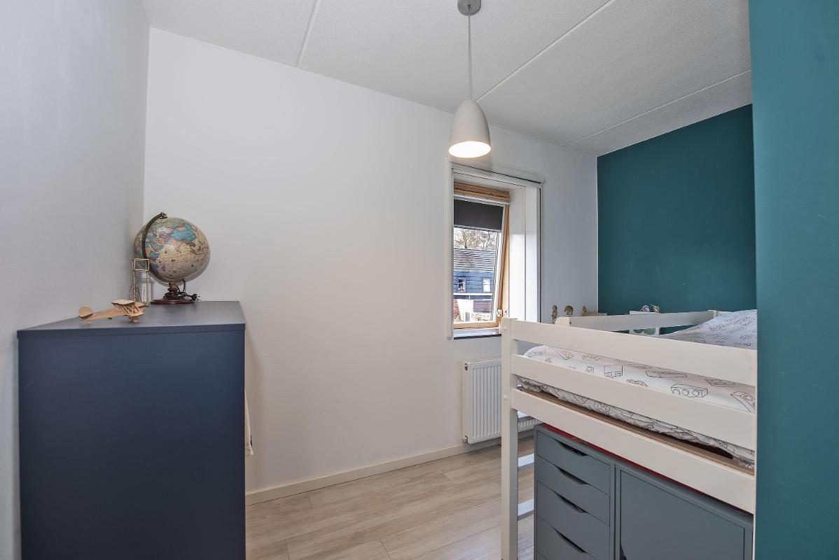 Via een vaste trap bereik je de tweede verdieping. Deze verdieping biedt een extra slaapkamer, een werkruimte en aparte praktische bergruimte. Ideaal als logeerkamer en als thuiswerkplek of hobbyruimte.