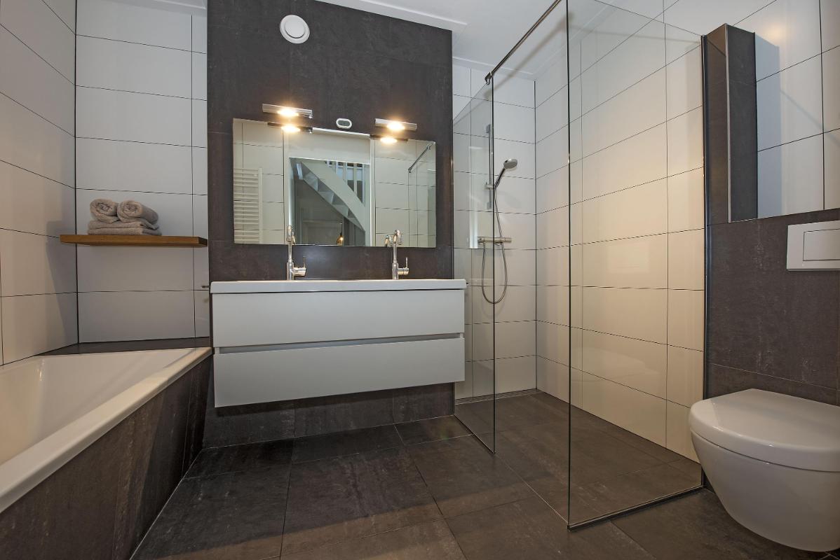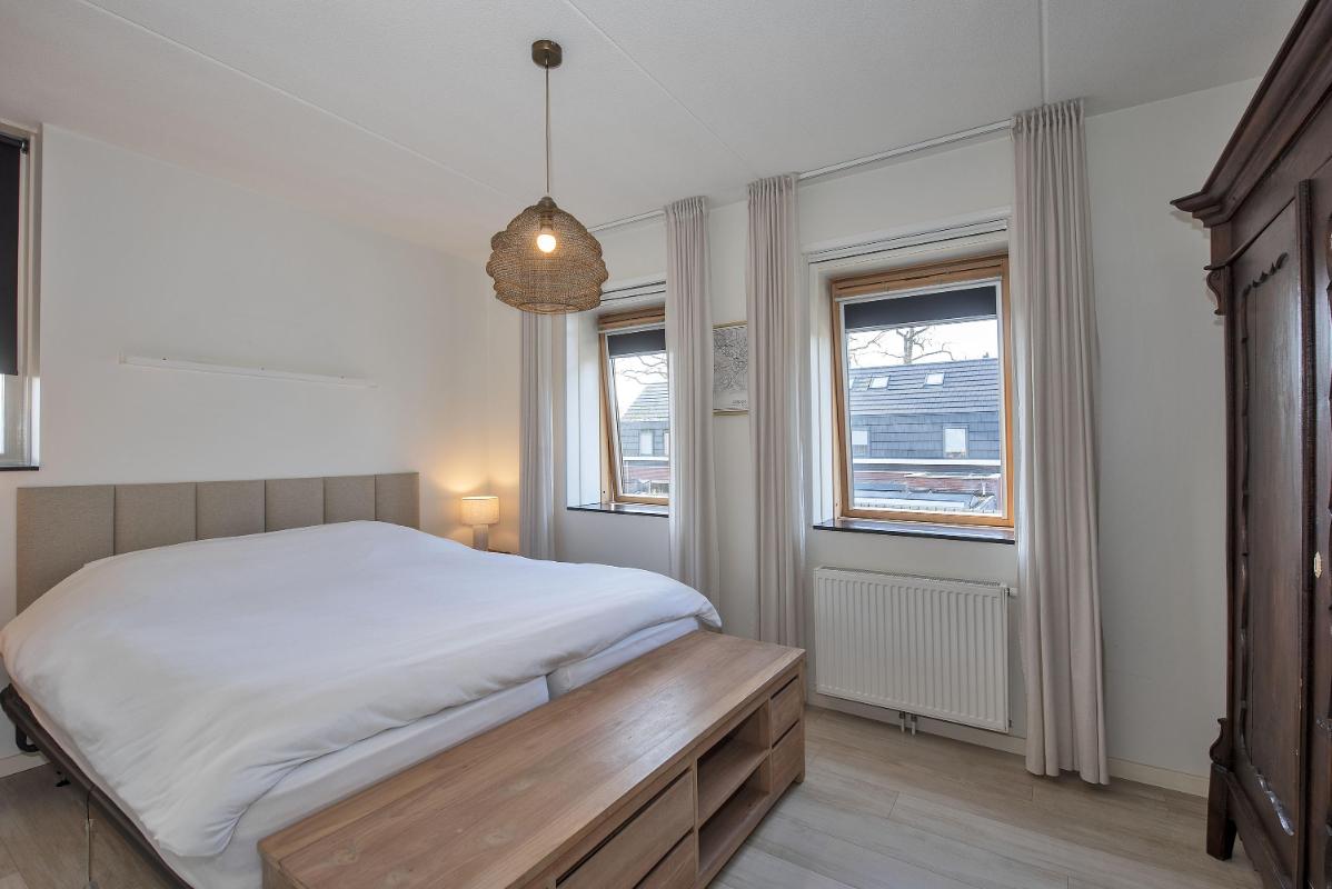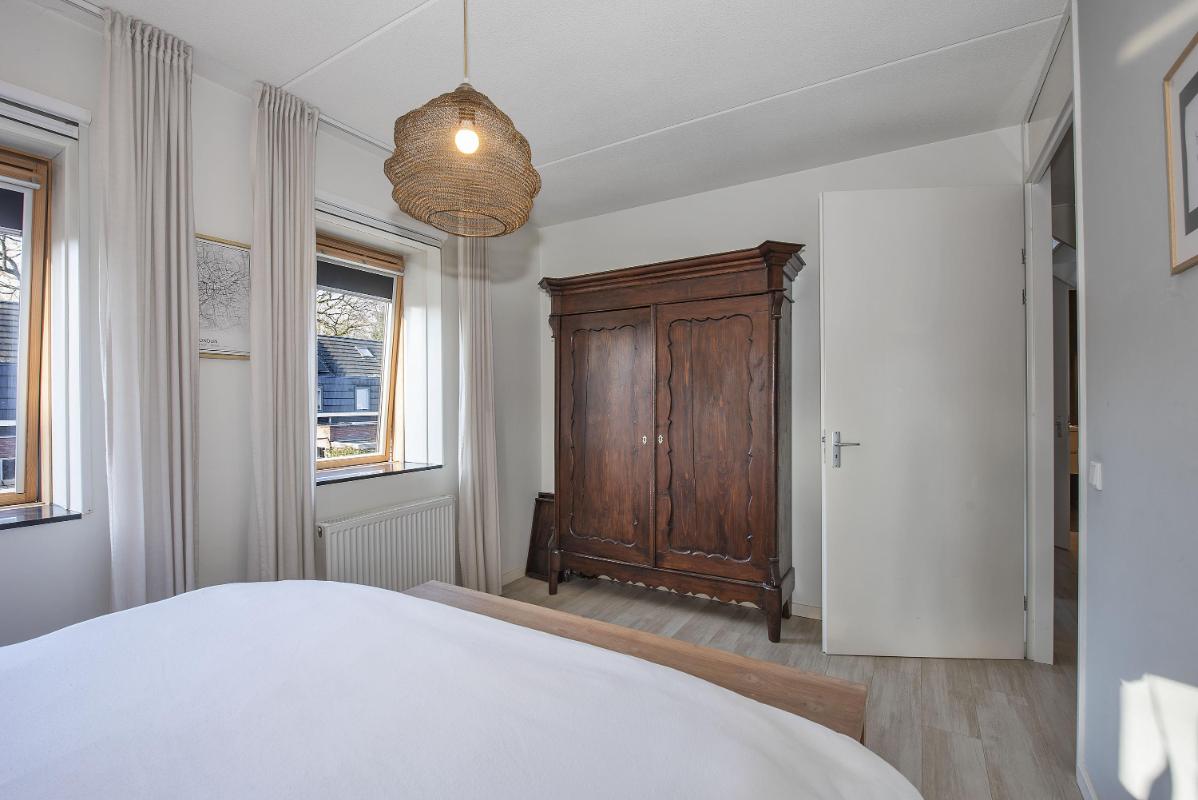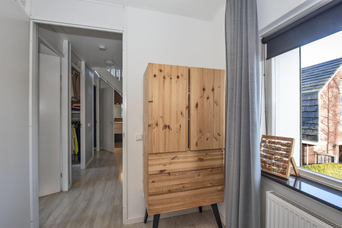 Vijf slaapkamers en een moderne badkamer Op de eerste verdieping bevinden zich meerdere slaapkamers, allemaal voorzien van veel daglicht. Eén van de kamers is ingericht als inloopkast voor praktisch overzicht en ultiem comfort. Daarnaast is een aparte kast ingericht voor wasmachine en droger op hoogte, waardoor wassen en drogen op de eerste verdieping mogelijk wordt maar wel netjes uit het zicht blijft. De badkamer is compleet uitgevoerd met een ligbad, dubbele wastafel met meubel, inloopdouche en toilet en heeft een verzorgde, moderne uitstraling.