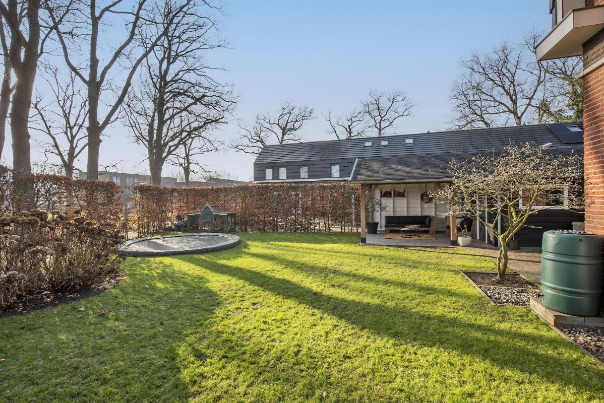 Ruime en groene tuin De rondom gelegen tuin bij deze hoekwoning is een echte meerwaarde met veel privacy. Dankzij de ligging op het zuidwesten geniet je hier vrijwel de hele dag van de zon, terwijl de prachtige, volwassen bomen langs de tuin zorgen voor aangename schaduwplekken. Zo vind je op elk moment van de dag een fijne plek om te ontspannen. De royale afmetingen bieden volop ruimte voor een extra terras, een speelplek of juist voor een groene oase. Een ideale combinatie van zon, schaduw, privacy en vrijheid.