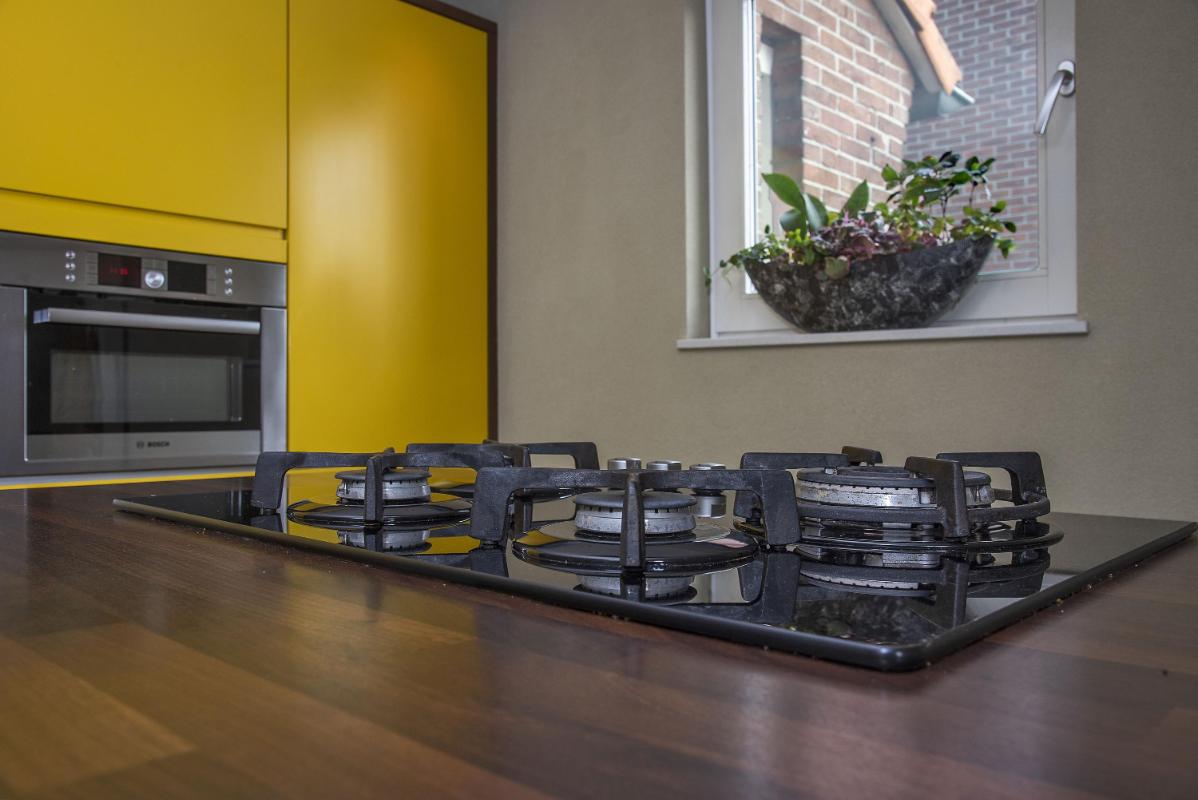 Naast de keuken ligt de bijkeuken, een extra ruimte met volop plek voor voorraad, jassen en alles wat je liever netjes uit het zicht houdt.