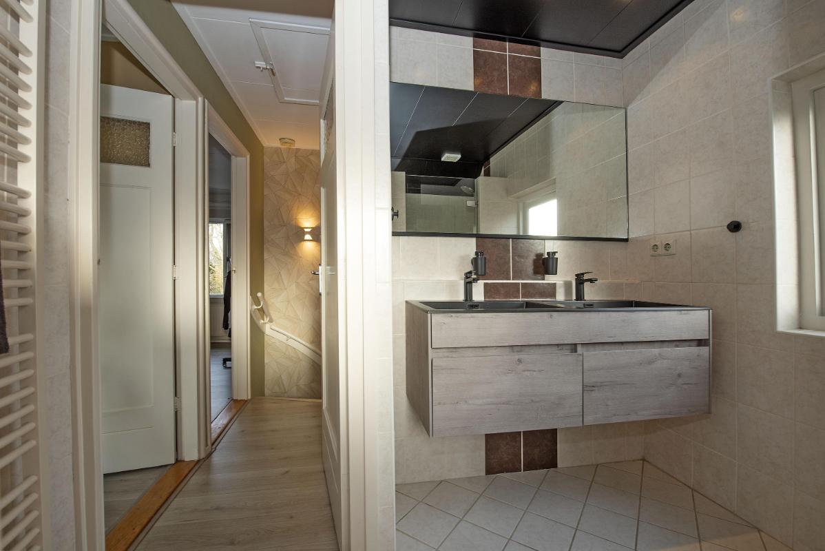 De badkamer is netjes afgewerkt en ingericht voor dagelijks gemak. Hier vind je een douche, een wastafelmeubel en een tweede toilet. Daarnaast beschikt de woning nog over een bergzolder, deze is bereikbaar via een vlizotrap.