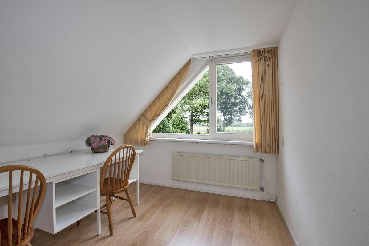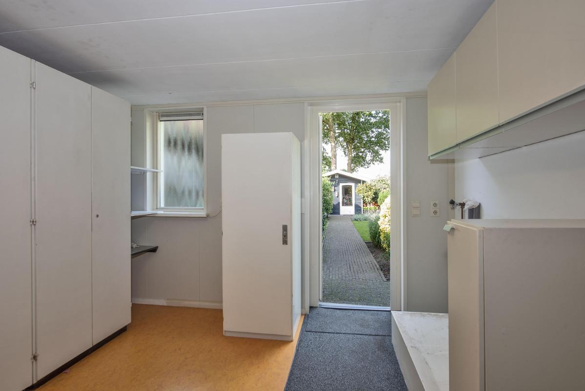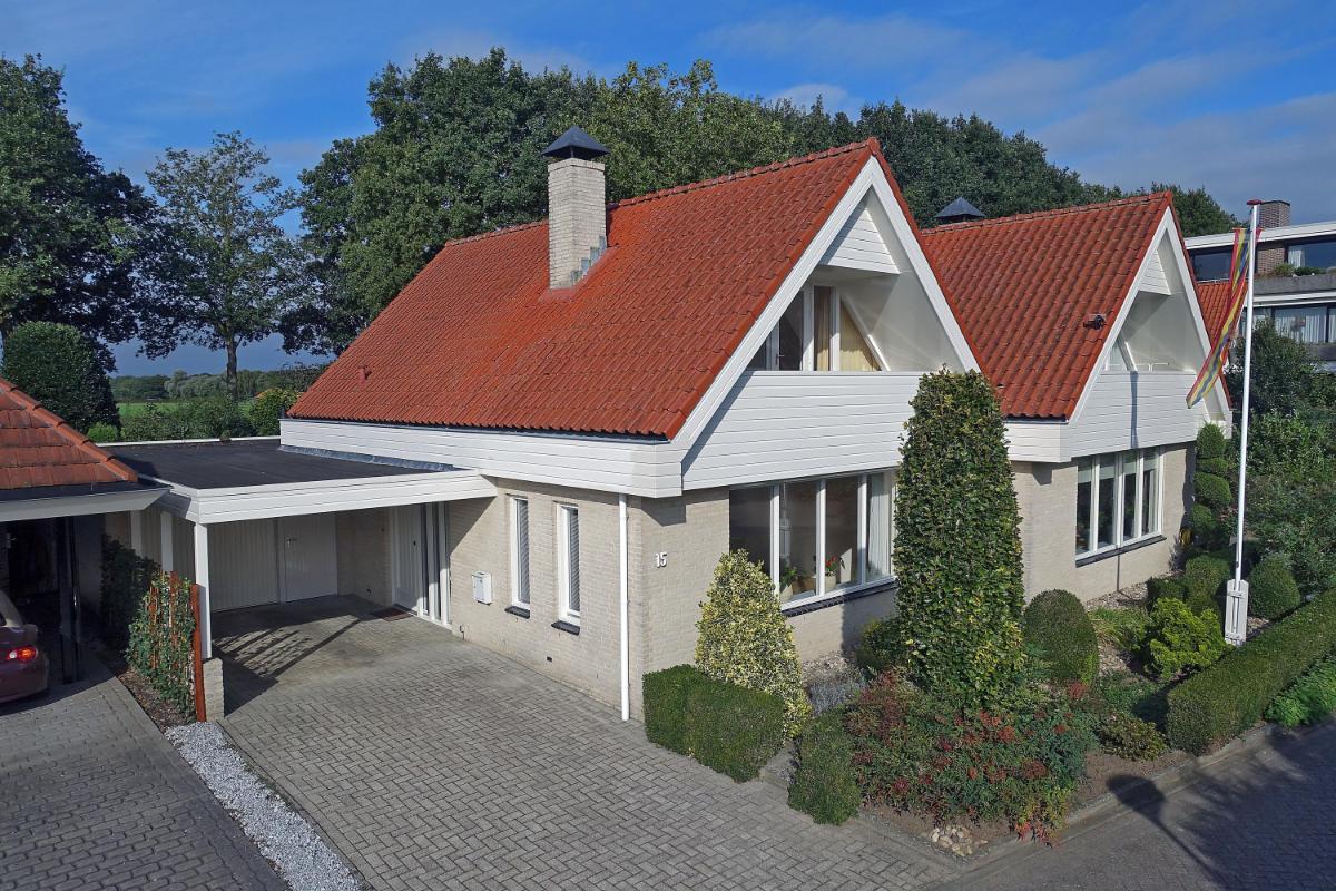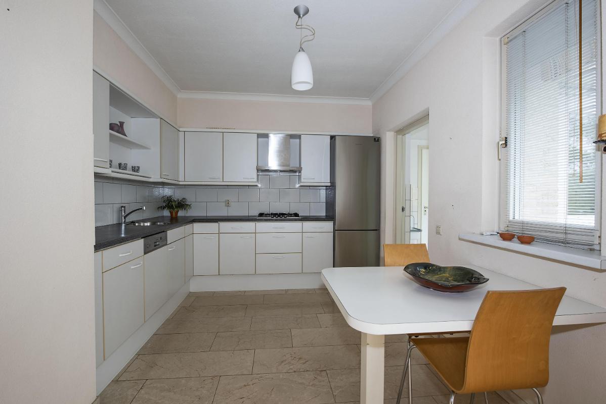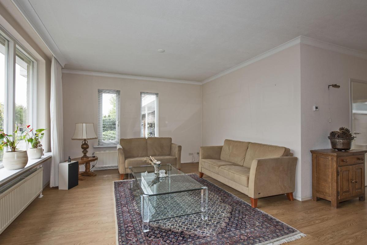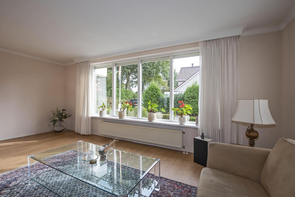 Binnen: licht en overzichtelijk De woonkamer aan de voorzijde is heerlijk licht en vormt samen met de open keuken een fijne leefruimte. Het eetgedeelte ligt aan de tuinzijde en vormt het hart van de woning: een plek waar je dagelijks dineert met fantastisch uitzicht. Vanuit de keuken kom je in de bijkeuken, die op zijn beurt toegang geeft tot de tuin en de garage. Het geheel is netjes onderhouden en biedt volop mogelijkheden om te moderniseren of juist te personaliseren.