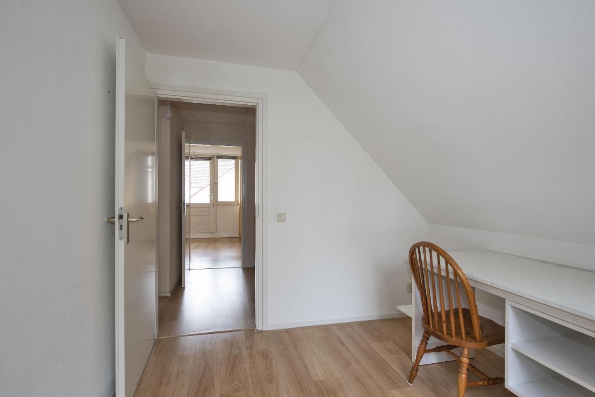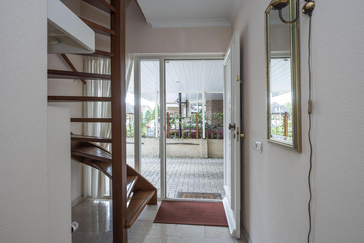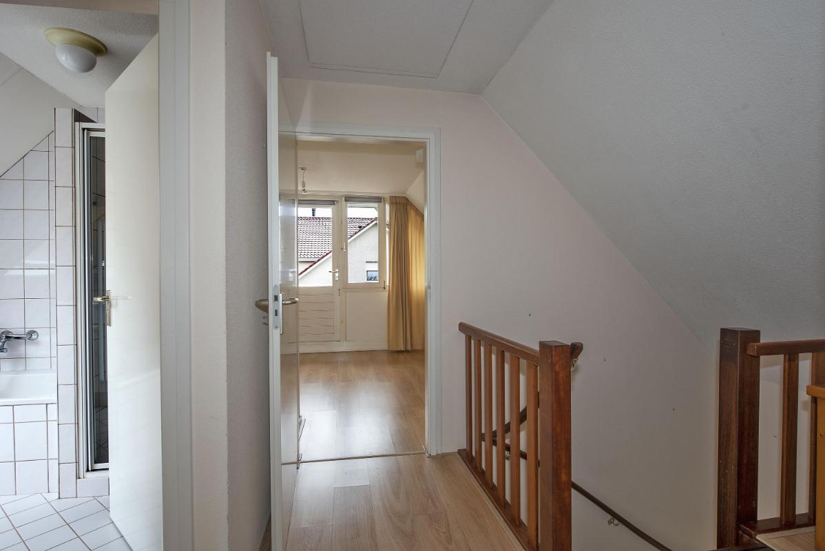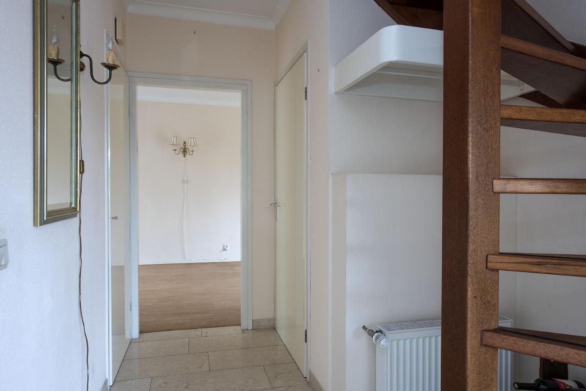 Indeling Begane grond: Entree met toilet en trapopgang. Lichte woonkamer aan de voorzijde. Open keuken met toegang tot de bijkeuken. Vanuit de bijkeuken doorgang naar de tuin en garage. Eerste verdieping: Overloop, drie slaapkamers en badkamer met ligbad, douche, wastafel en tweede toilet. Tweede verdieping: Bergzolder, bereikbaar via vlizotrap.