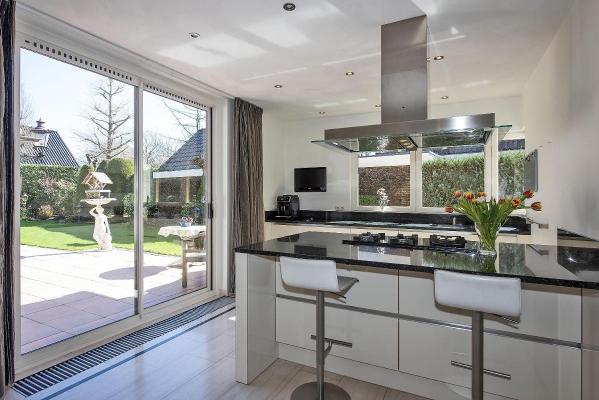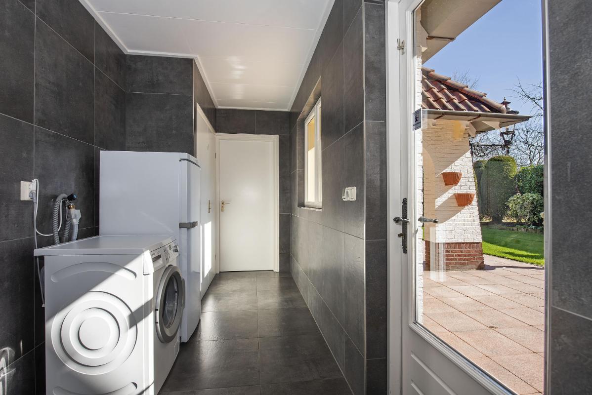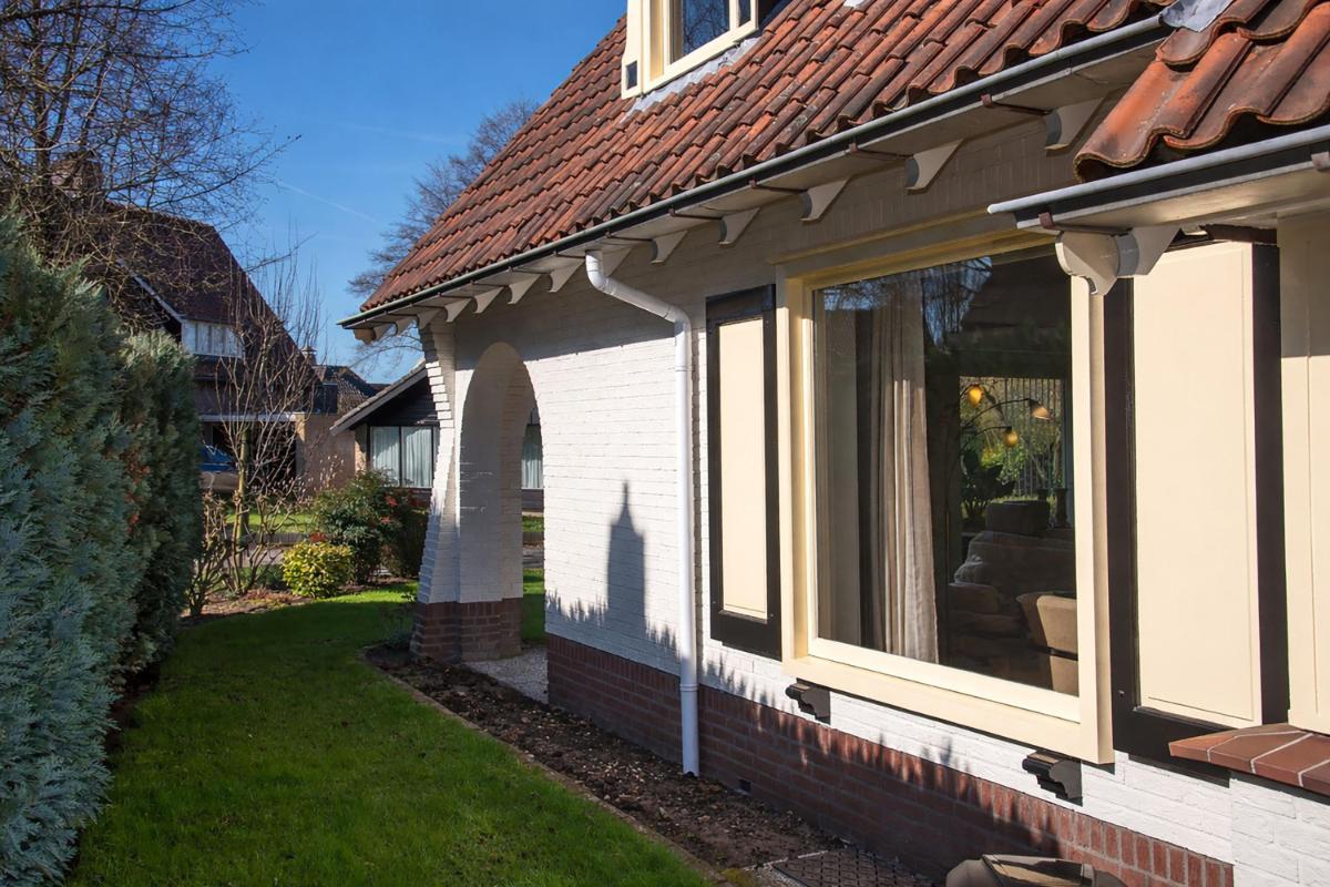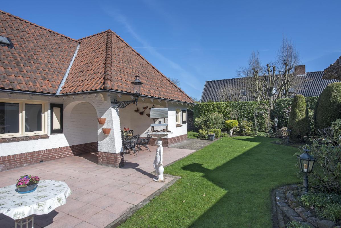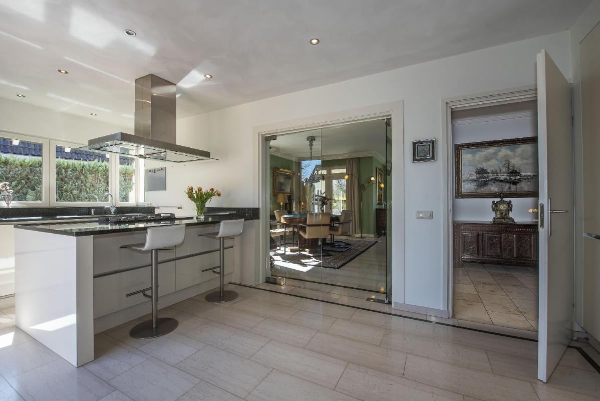 Zodra je binnenkomt, voel je het: dit is een woning met een uitgesproken eigen karakter. De royale entree vormt een stijlvolle binnenkomer en zet direct de toon. De woonkamer is het warme en uitnodigende hart van de woning. De gashaard zorgt voor sfeer, terwijl de vloerverwarming in onder andere de woonkamer, keuken en hal bijdraagt aan een aangenaam wooncomfort. Aansluitend ligt het eetgedeelte, een fijne plek voor lange diners of een rustige start van de dag. Vanuit hier stap je zo onder de overkapping, waar je ’s ochtends heerlijk zit met een kop koffie. De keuken is stijlvol ingericht met een centraal kookeiland en diverse inbouwapparatuur. Via de schuifpui loopt de ruimte vloeiend over in de tuin. Aansluitend vind je de bijkeuken met kastruimte en witgoedaansluiting en doorgang naar de inpandige garage. De inpandige garage biedt mogelijkheden voor een praktijk of bedrijf aan huis. Ook in de slaapkamer en badkamer op de begane grond komt het comfortniveau duidelijk terug. De badkamer, vernieuwd in 2020, is compleet uitgevoerd met een ligbad, stortdouche, dubbele wastafel met meubel en vloerverwarming.