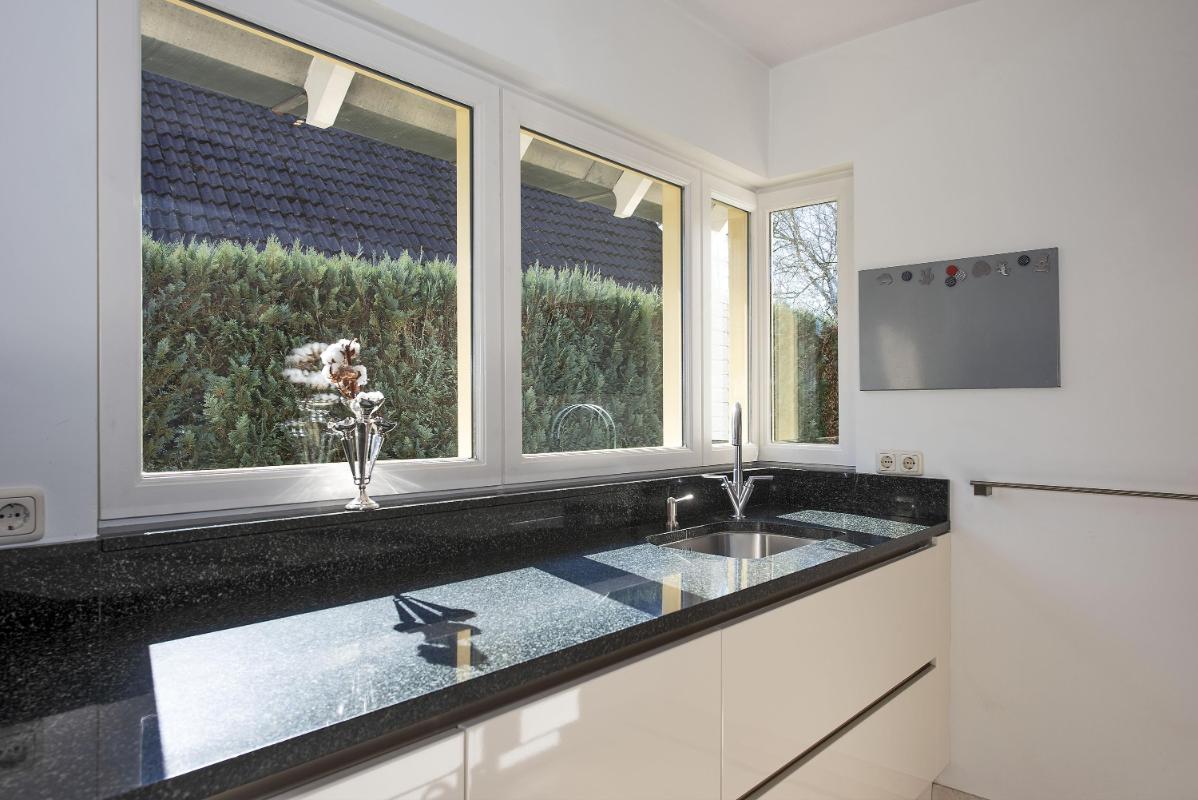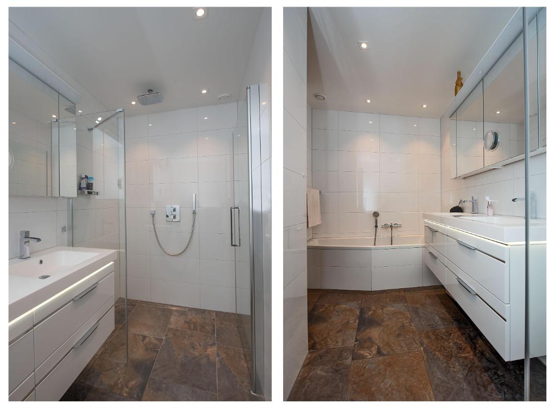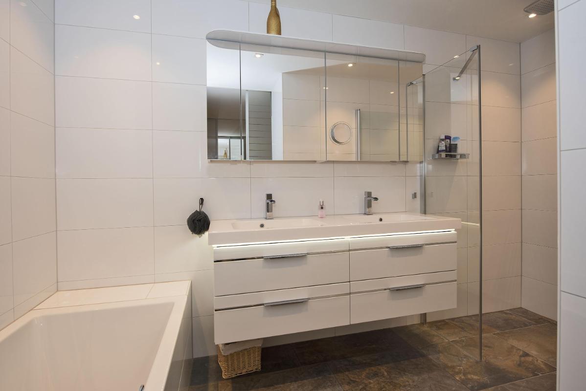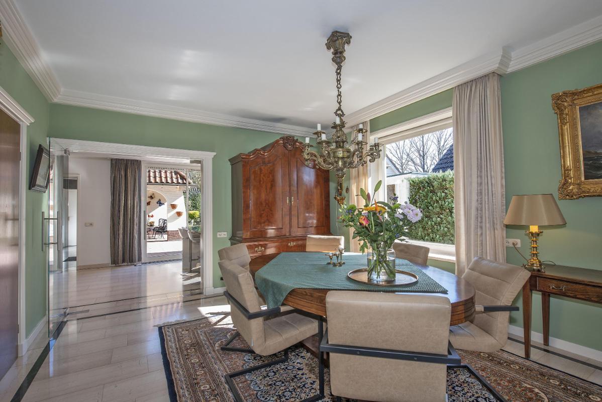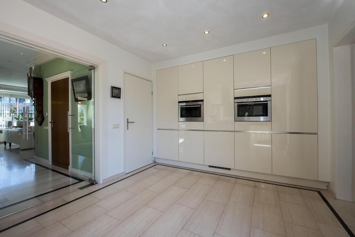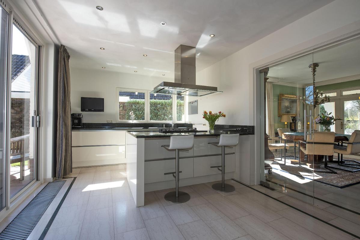 Zodra je binnenkomt, voel je het: dit is een woning met een uitgesproken eigen karakter. De royale entree vormt een stijlvolle binnenkomer en zet direct de toon. De woonkamer is het warme en uitnodigende hart van de woning. De gashaard zorgt voor sfeer, terwijl de vloerverwarming in onder andere de woonkamer, keuken en hal bijdraagt aan een aangenaam wooncomfort. Aansluitend ligt het eetgedeelte, een fijne plek voor lange diners of een rustige start van de dag. Vanuit hier stap je zo onder de overkapping, waar je ’s ochtends heerlijk zit met een kop koffie. De keuken is stijlvol ingericht met een centraal kookeiland en diverse inbouwapparatuur. Via de schuifpui loopt de ruimte vloeiend over in de tuin. Aansluitend vind je de bijkeuken met kastruimte en witgoedaansluiting en doorgang naar de inpandige garage. De inpandige garage biedt mogelijkheden voor een praktijk of bedrijf aan huis. Ook in de slaapkamer en badkamer op de begane grond komt het comfortniveau duidelijk terug. De badkamer, vernieuwd in 2020, is compleet uitgevoerd met een ligbad, stortdouche, dubbele wastafel met meubel en vloerverwarming.