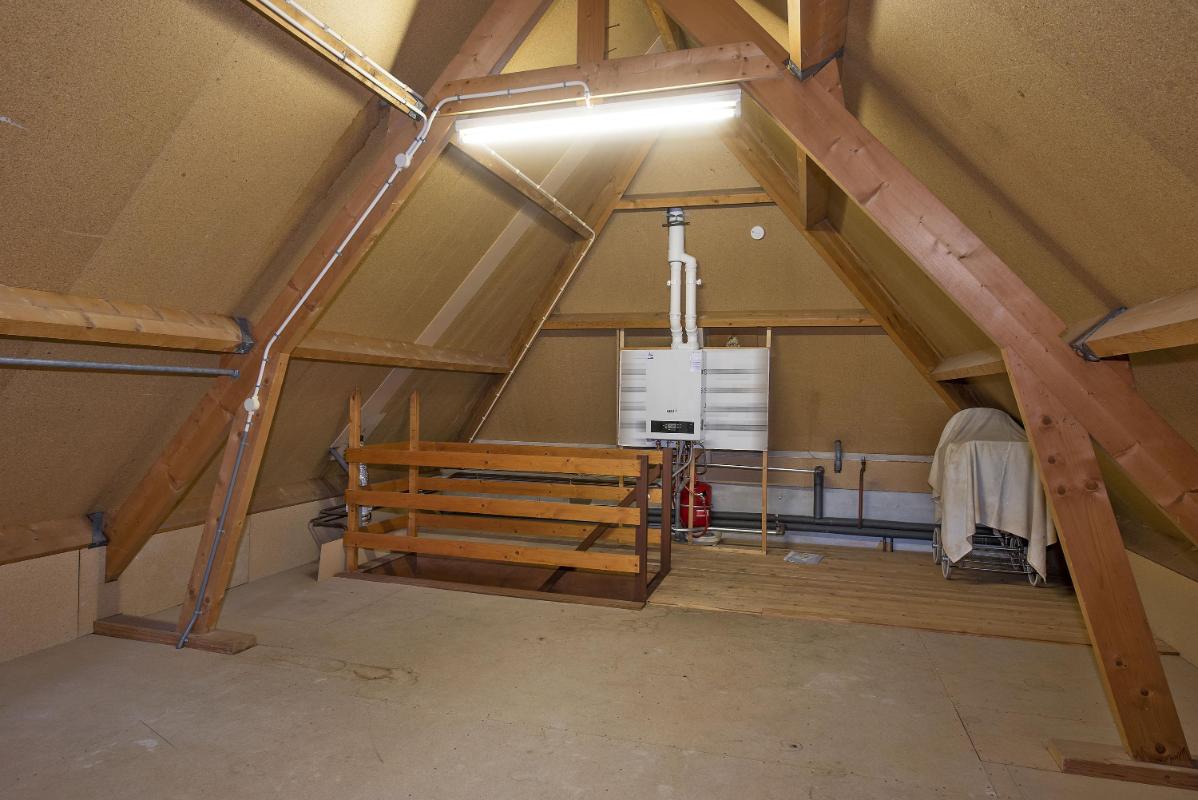 De zolder De bovenste verdieping is een zolder met opstelplaats voor de cv installatie.
