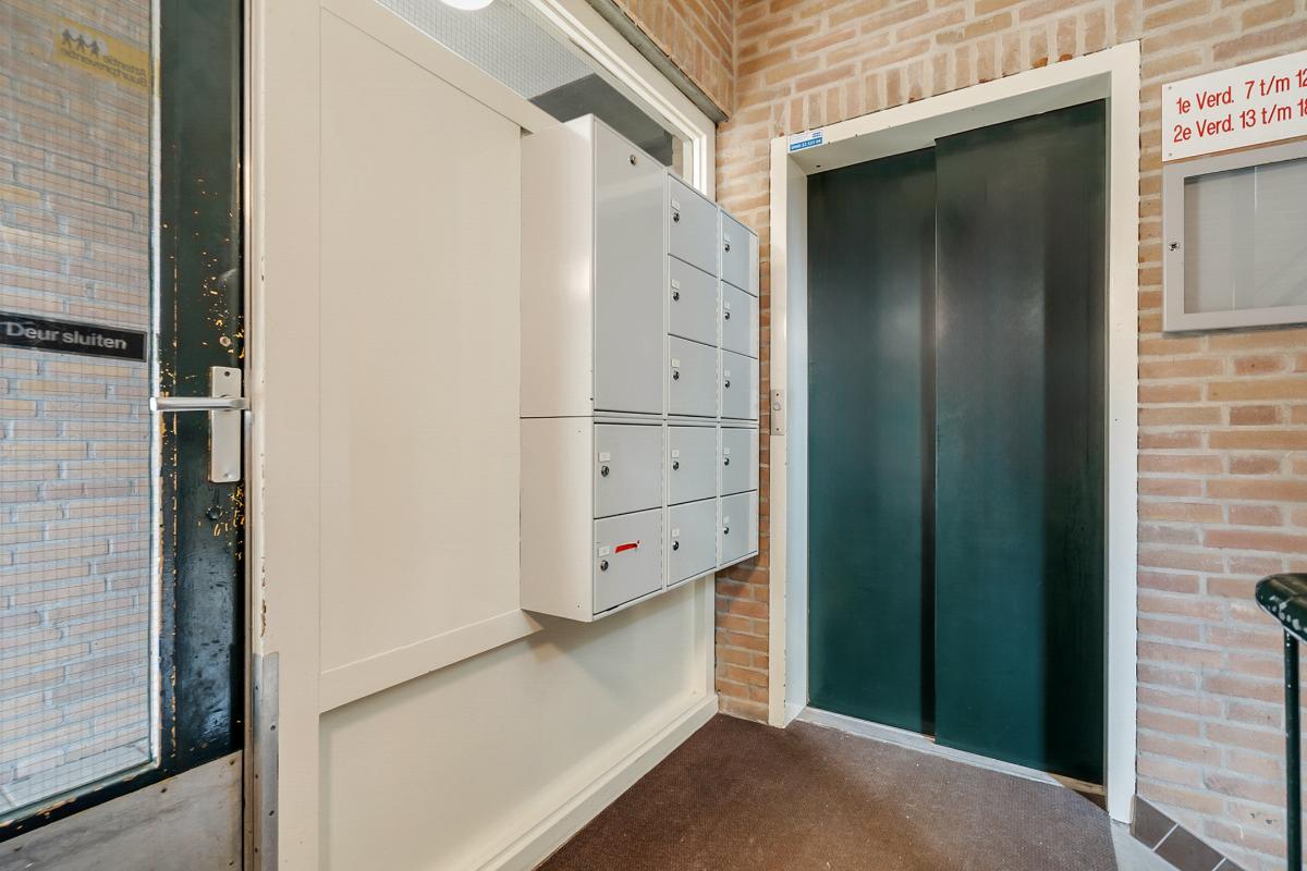 Indeling Kelder: doormiddel van een lift of de trap te bereiken berging. Begane grond: entree met brievenbussen en intercomsysteem, trappenhuis, liftinstallatie, fietsenstalling. Tweede verdieping: entree met meterkast, toilet met fonteintje, woonkamer met open keuken voorzien van kookplaat, afzuigkap, combi oven magnetron, koelkast en vriezer, toegang tot het balkon, slaapkamer, badkamer met douche, wastafel en wastafelmeubel. Externe berging op de begane grond.