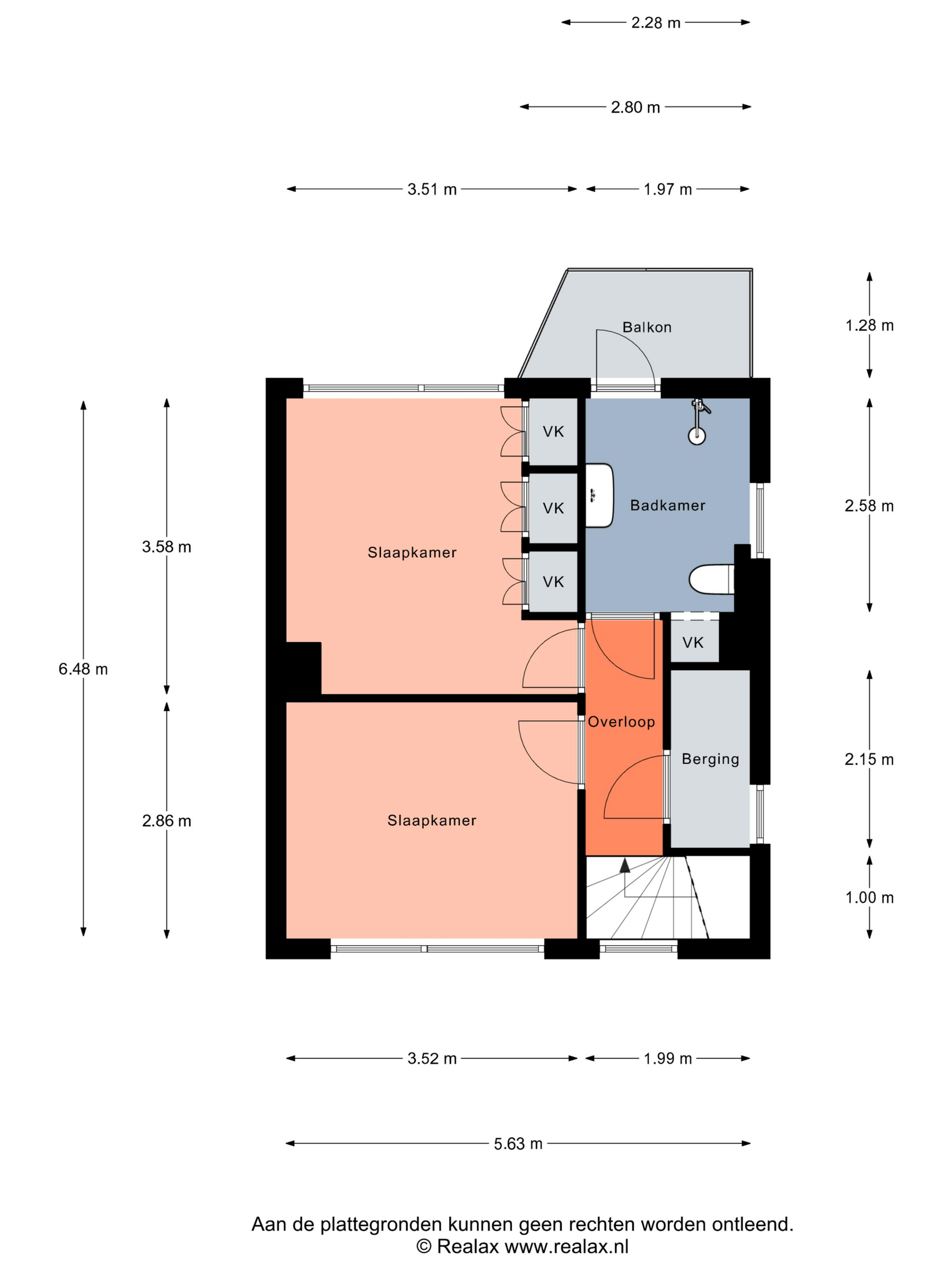 Indeling Begane grond: hal met trapopgang, meterkast en toilet. Lichte woonkamer aan de voorzijde met open verbinding naar de leefkeuken. Aan de achterzijde ruimte voor een eethoek met schuifpui naar de tuin. Bijkeuken met witgoedaansluitingen en toegang tot de tuin. Eerste verdieping: overloop, twee slaapkamers, waarvan één met een vaste kastenwand, badkamer met douche, toilet, wastafelmeubel en toegang tot het balkon. Separate berging. Tweede verdieping: zolderruimte met dakraam, bergruimte achter de knieschotten en cv-/installatieruimte. Tuin: diepe achtertuin met overkapping, achterom, ruim kantoor/werkruimte en grote berging.