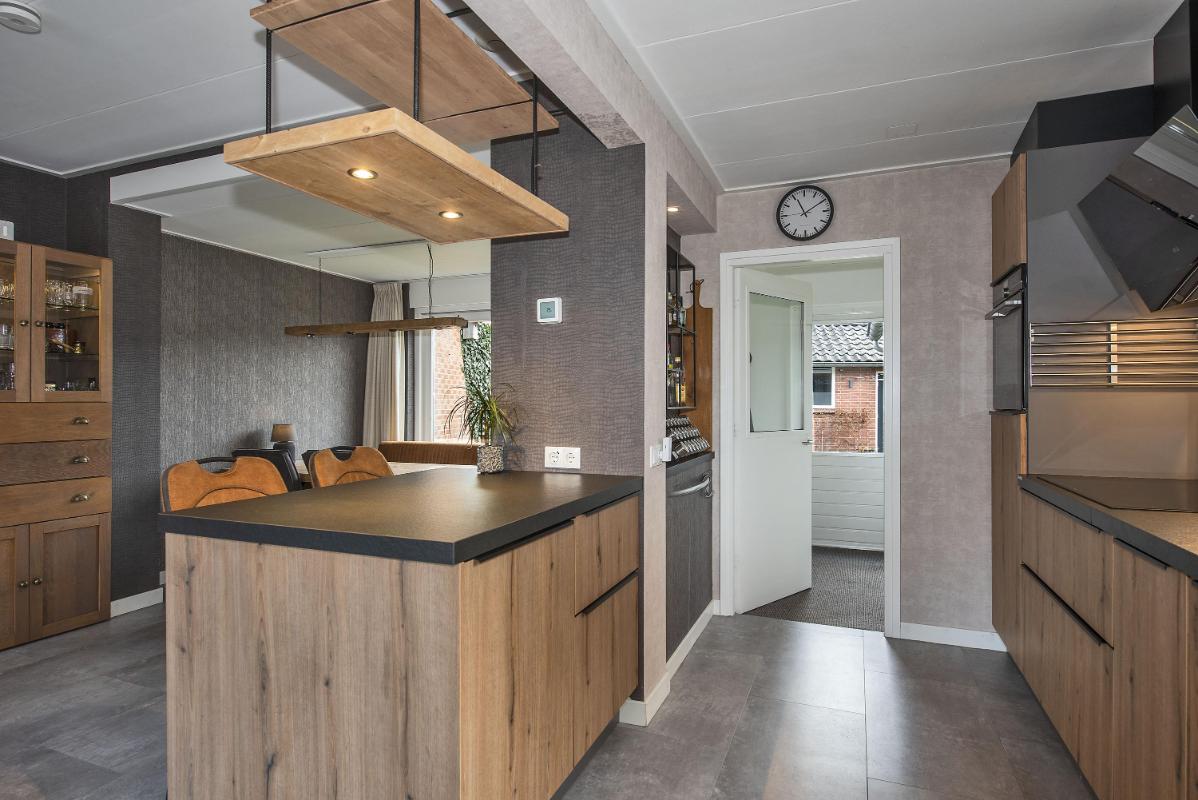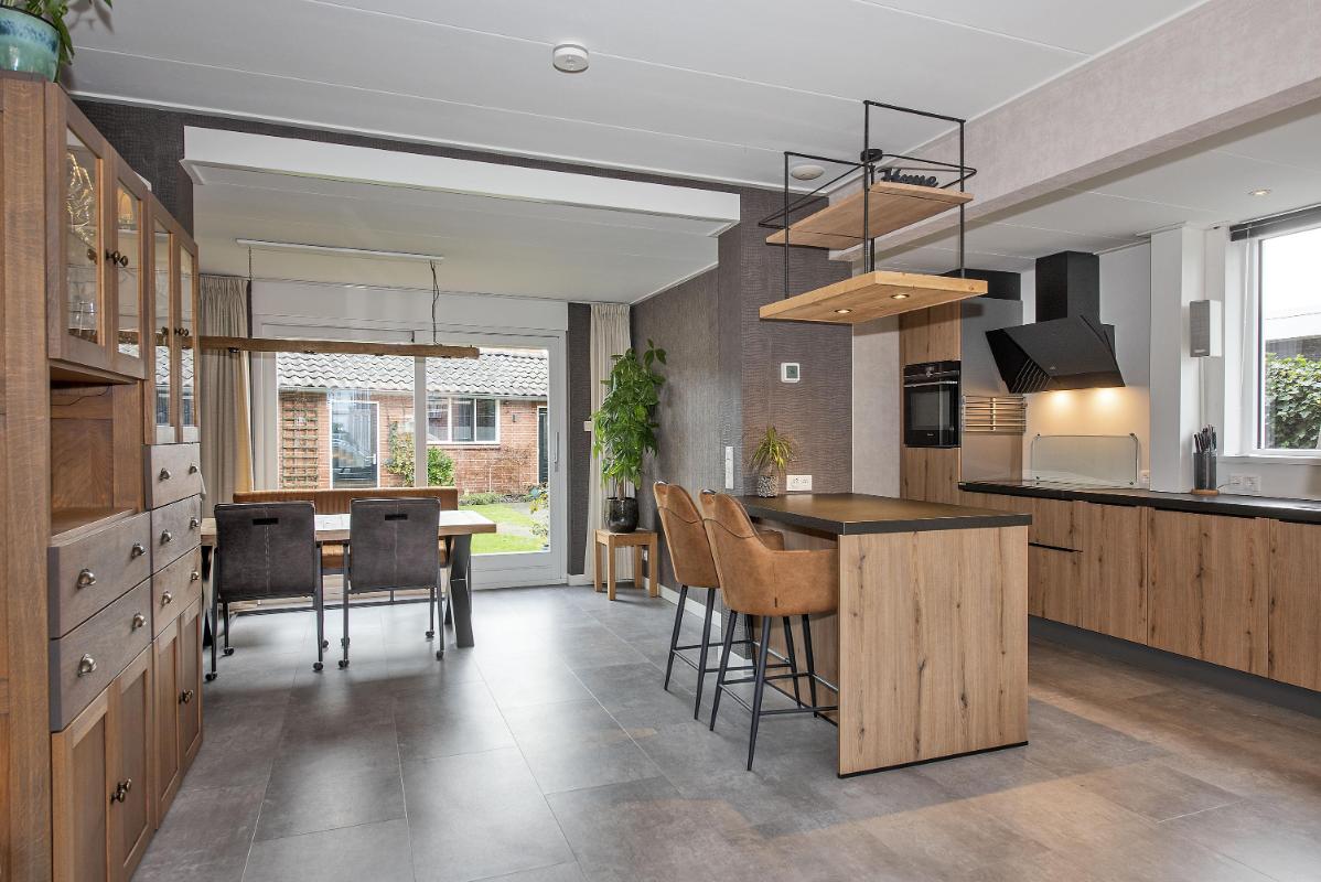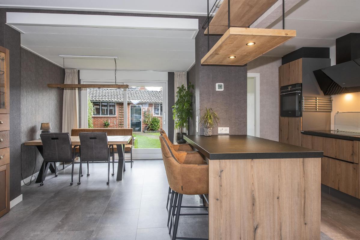 Een fijne leefkeuken en veel licht in huis Wanneer je via de hal binnenkomt, vind je hier het toilet, de meterkast en de trapopgang. Vanuit de hal stap je als eerste de ruime leefkeuken binnen. Dit is het hart van de woning: modern ingericht, praktisch opgezet en voorzien van alle gewenste inbouwapparatuur zoals kookplaat, afzuigkap, koelkast, vriezer, combioven, vaatwasser en quooker. Achter de keuken vind je de bijkeuken, een praktische plek met extra opbergruimte en de wasvoorzieningen. Ideaal voor voorraad of dagelijkse spullen.