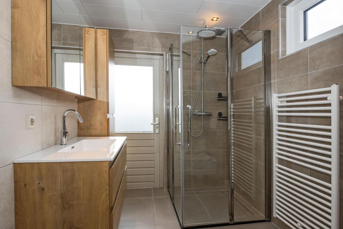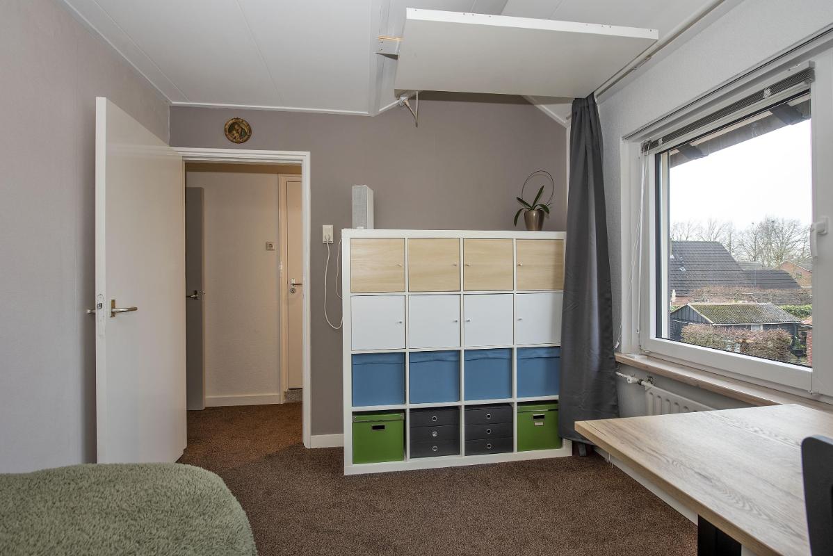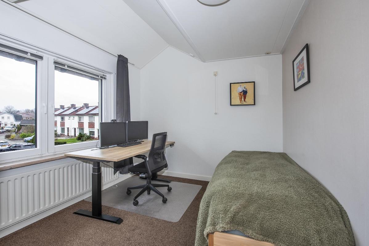 Twee slaapkamers en een moderne badkamer Op de eerste verdieping bevinden zich twee slaapkamers, waarvan één slaapkamer met vaste kastenwand. De slaapkamers zijn ruim en licht, waardoor ze net zo makkelijk te gebruiken zijn als hobby- of werkkamer. De badkamer (2021) is modern uitgevoerd met douche, wastafelmeubel, toilet en toegang tot het balkon.