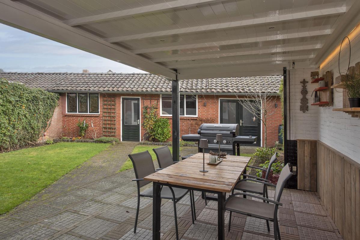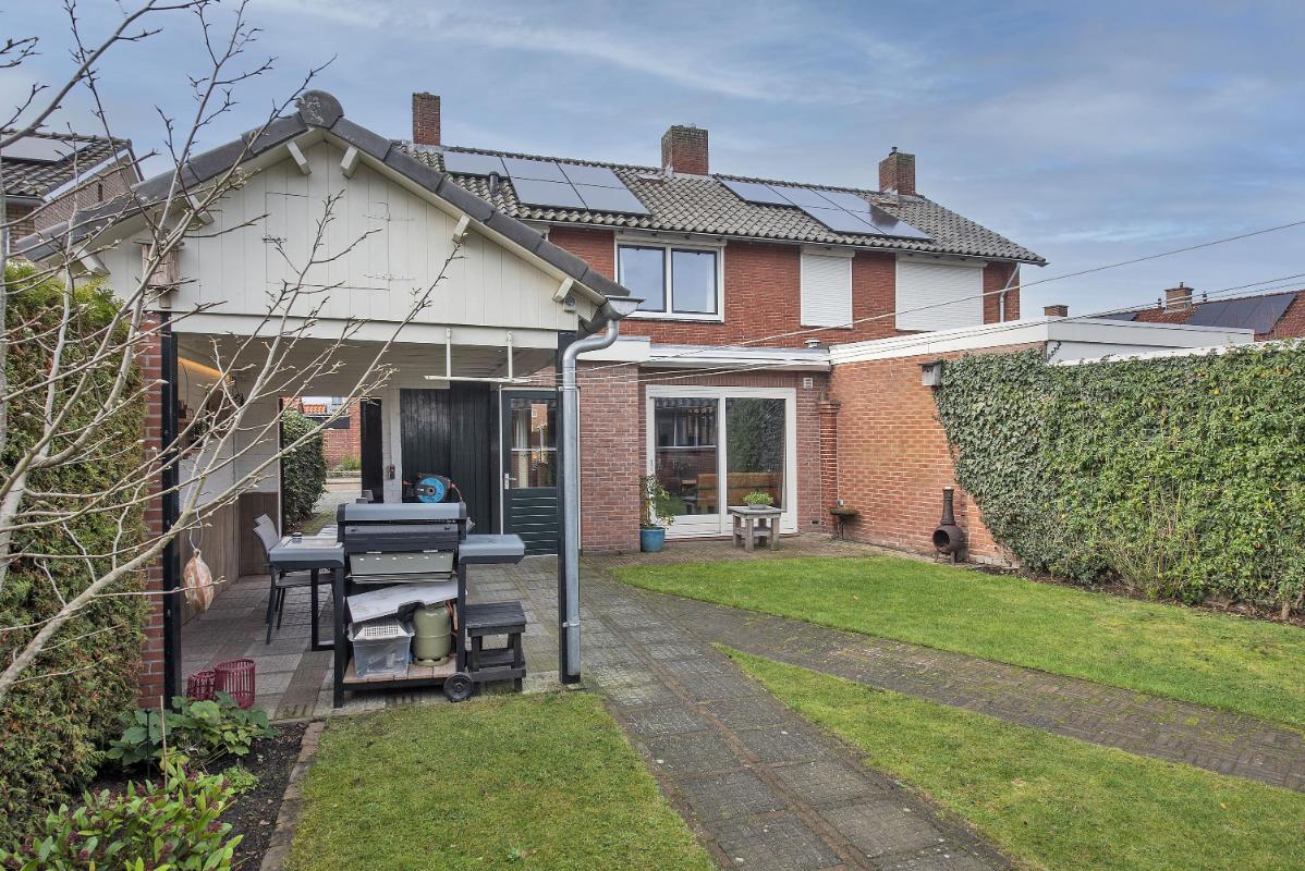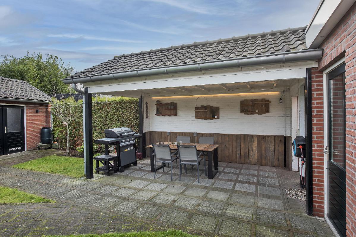 Genieten in een diepe en functionele tuin De achtertuin van deze woning is diep, groen en met meerdere plekken om fijn buiten te zijn. Direct achter de woning ligt een terras met overkapping, perfect voor lange avonden buiten of een beschutte plek op warmere dagen. Verderop in de tuin is volop ruimte voor een speelgedeelte, een loungeset of juist een rustige zitplek.