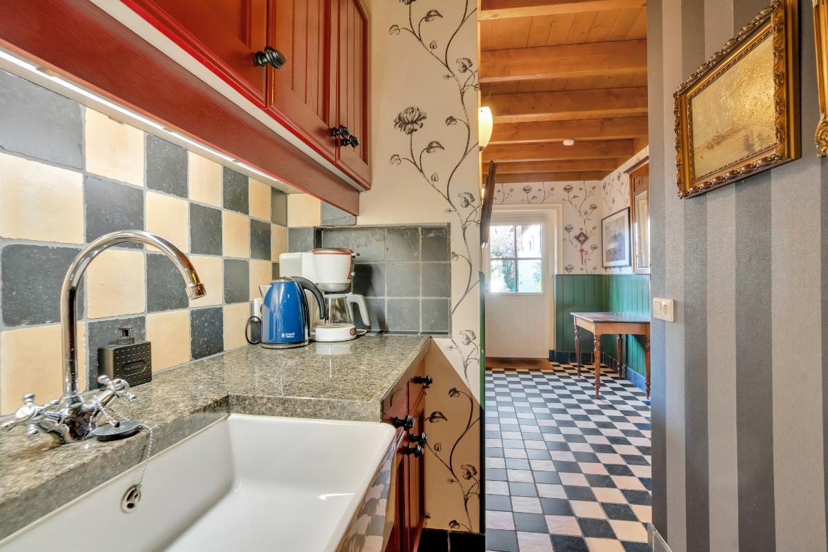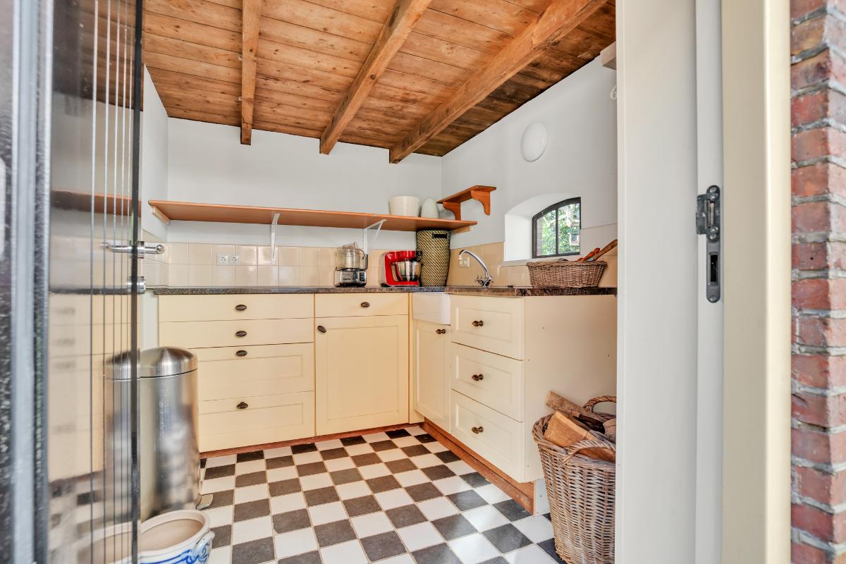 Het gastenverblijf als waardevolle aanvulling: Het hoogwaardige bijgebouw maakt deze woning extra veelzijdig. Met eigen ruimtes en complete voorzieningen is dit een ideale plek voor werken aan huis, een atelier, gastenverblijf of hobbyruimte. Daarnaast is er nog een ander klein huisje aanwezig, het bakkershuisje. Een bakkershuisje was vroeger een apart gebouw waar brood werd gebakken voor het huishouden en vaak ook voor de directe omgeving. Door de losse ligging werd het risico op brand beperkt en bleef het hoofdgebouw beschermd. Nu tref je hier een berging en, als leuke knipoog naar de historie, een tweede keuken.