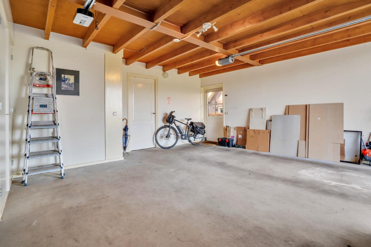 Gastenverblijf: Voorzijde in gebruik als garage met dubbele openslaande deuren. Het achterste gedeelte is ingericht als tweede woongedeelte met eigen entree aan de zijkant, compacte keuken, badkamer met toilet, wastafel en douche en een woonkamer of hobbyruimte met vide. Op de eerste verdieping bevinden zich een ruime overloop en een royale slaapkamer.