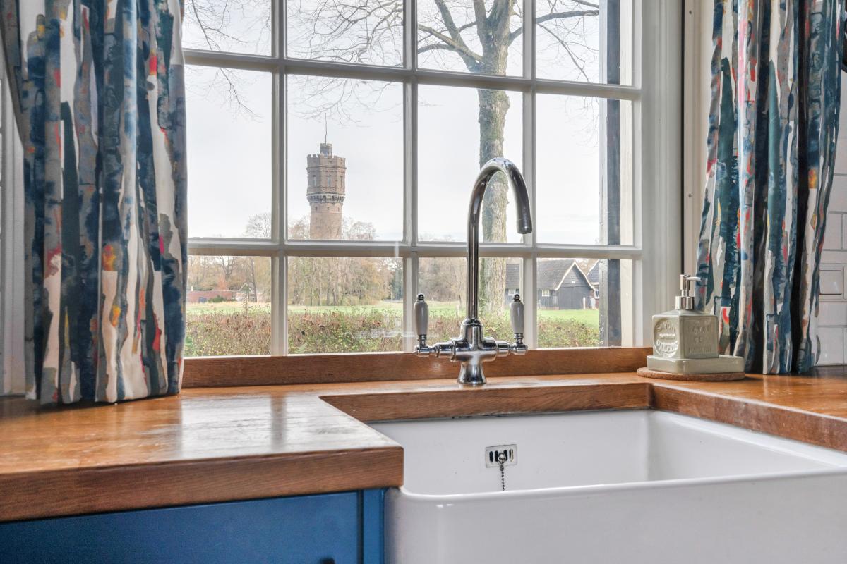 De hoofdwoning: Volop karakter, helemaal passend bij de sfeer van de woning. De woonkamer is ruim en licht en staat in verbinding met de keuken. Juist vanuit de keuken geniet je van het vrije uitzicht over het omliggende landschap, een fijne plek om de dag te beginnen of af te sluiten. En hoe uniek: vanaf het aanrecht kijk je uit op de watertoren. Daarnaast tref je ook nog een extra kamer op de begane grond, een fijne thuiswerkplek of hobbykamer. Deze kamer is multifunctioneel. Op de verdiepingen zijn, met een speelse niveau indeling, 3 slaapkamers en badkamer te vinden.