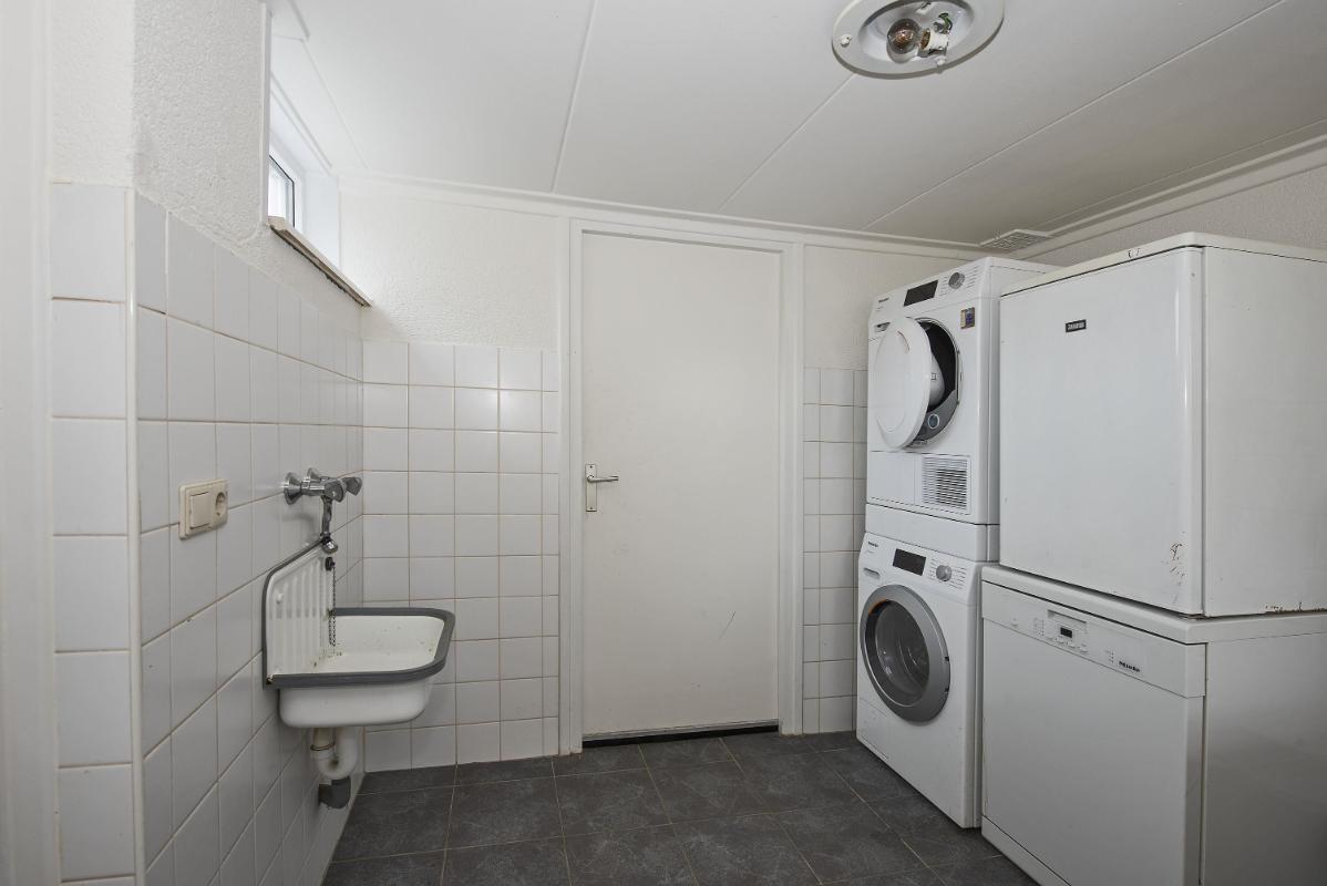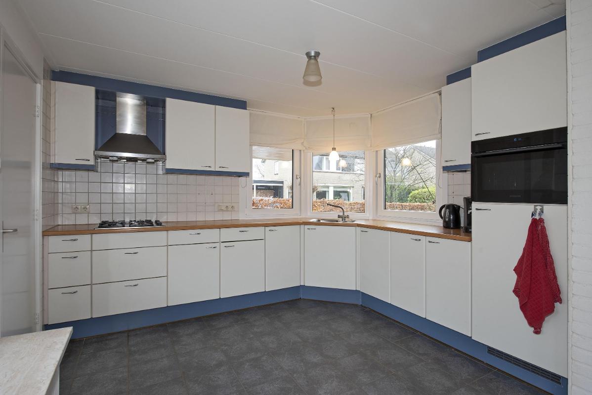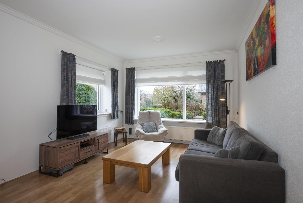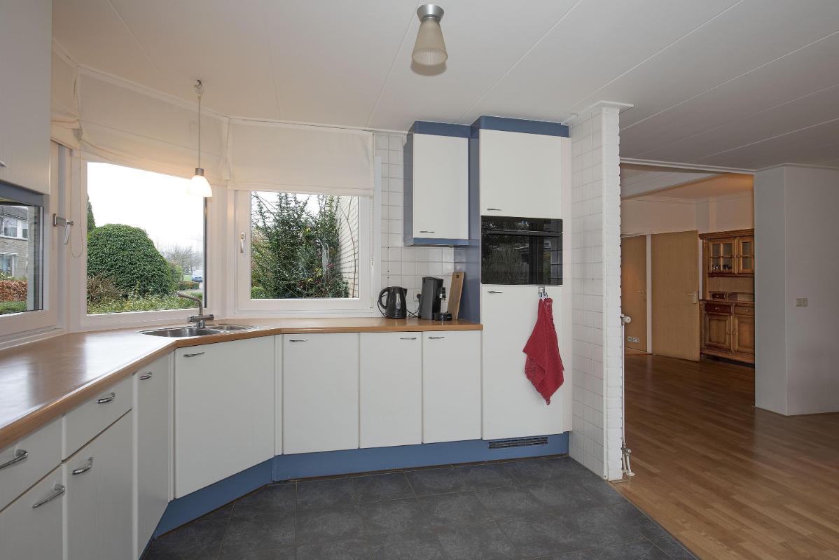 Ruimte in en om het huis Zodra je binnenkomt, merk je hoe ruim en uitnodigend deze woning aanvoelt. De woonkamer aan de voorzijde is opvallend licht en biedt genoeg plek voor een comfortabele zithoek. Dankzij de open verbinding met de eethoek ontstaat er een fijne doorloop. Aan de achterzijde vind je de keuken, praktisch ingedeeld. Vanuit de keuken loop je door naar de bijkeuken, waar extra opbergruimte en de toegang tot de tuin samenkomen. Deze aanbouw zorgt net voor dat beetje extra leefruimte waar je elke dag plezier van hebt.