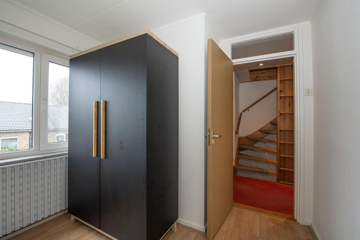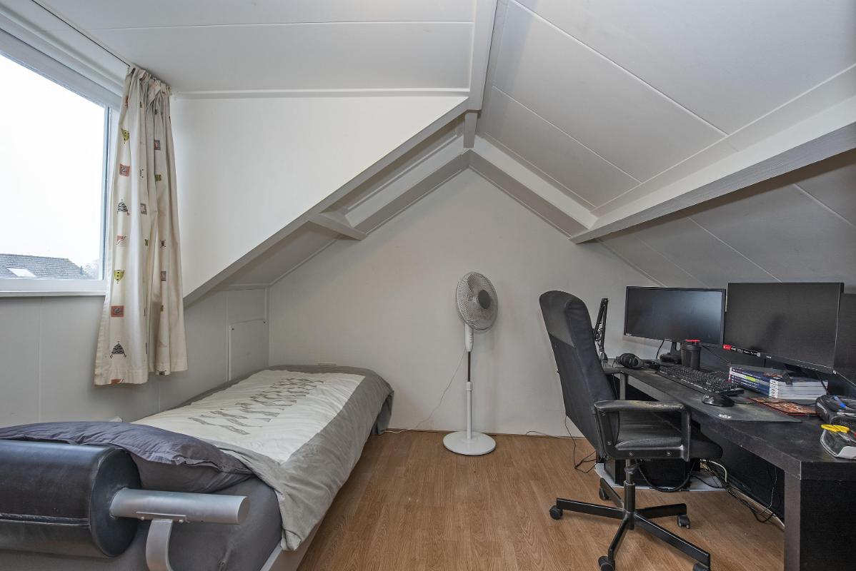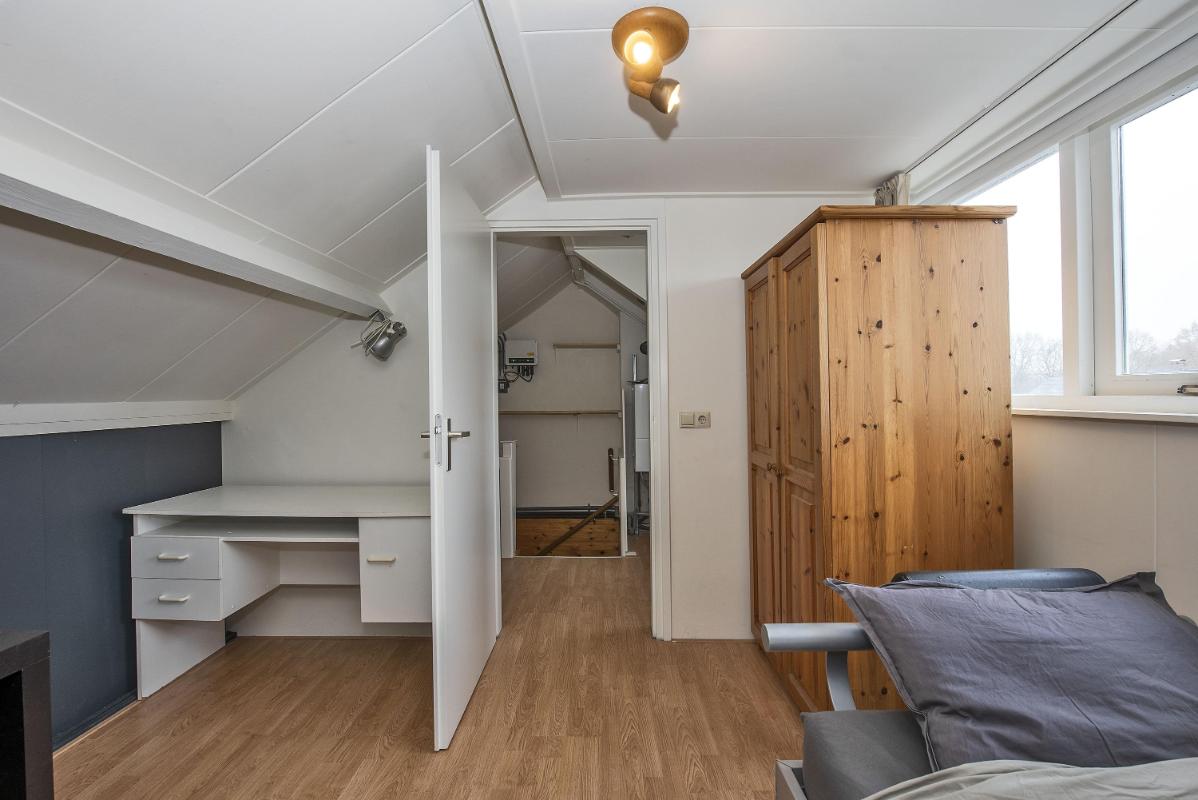 De tweede verdieping biedt nog een fijne verrassing: een ruime vierde slaapkamer met dakkapel aan de achterzijde. Dankzij de knusse indeling en bergruimte onder de schuine kanten voelt deze verdieping als een volwaardige leeflaag.