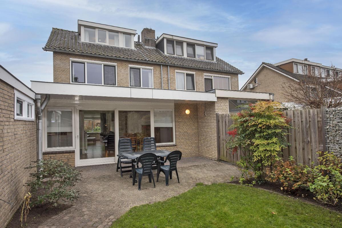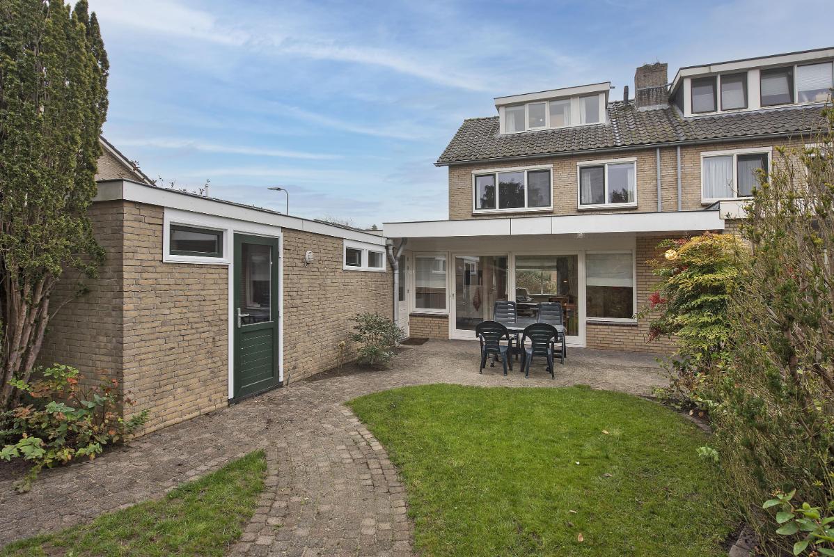 Indeling Begane grond: entree met hal, meterkast en toilet. De woonkamer ligt aan de voorzijde en biedt een lichte en brede leefruimte. Aan de achterzijde bevindt zich de eethoek en aansluitend de keuken, uitgerust met een kookplaat, afzuigkap en oven. Via de bijkeuken stap je de tuin in en is ook de berging bereikbaar. Eerste verdieping: overloop met toegang tot drie slaapkamers. De badkamer is voorzien van een ligbad met douchefunctie, wastafel en tweede toilet. Tweede verdieping: overloop, vierde slaapkamer met dakkapel aan de achterzijde en bergruimte onder de schuine wanden. Tuin: diepe achtertuin met terras, veel groen en een vrijstaand houten tuinhuis. De tuin is ook te bereiken via een achterom.