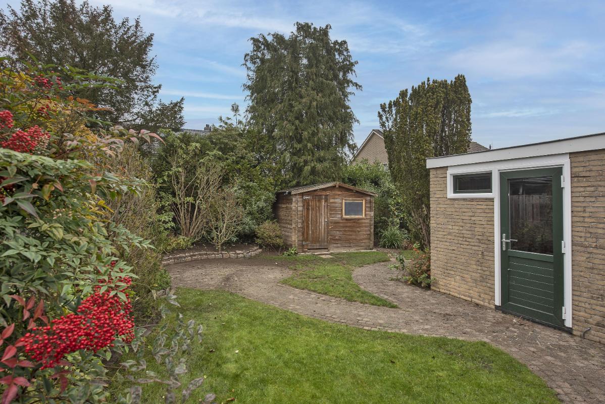 De achtertuin is minstens zo aantrekkelijk als de woning zelf. Diep, groen en met voldoende privacy, waardoor je hier op elk moment van de dag een plek vindt om te ontspannen. Direct achter de woning ligt een terras waar je heerlijk beschut kunt zitten. Achterin staat een vrijstaand houten tuinhuis, ideaal voor opslag of gereedschap. Met de achterom blijft de tuin bovendien praktisch bereikbaar.