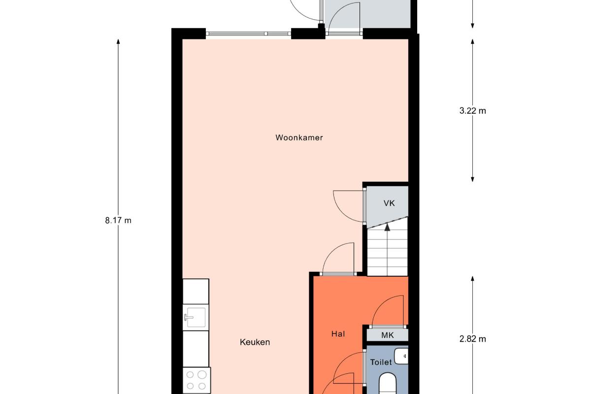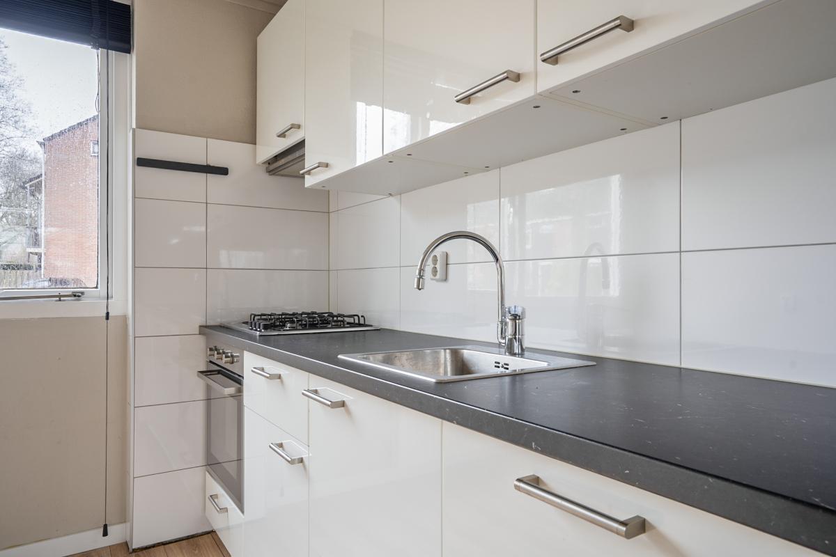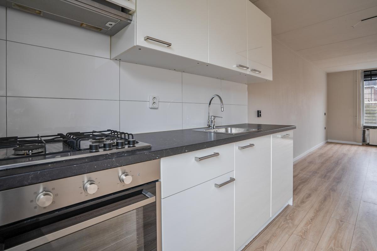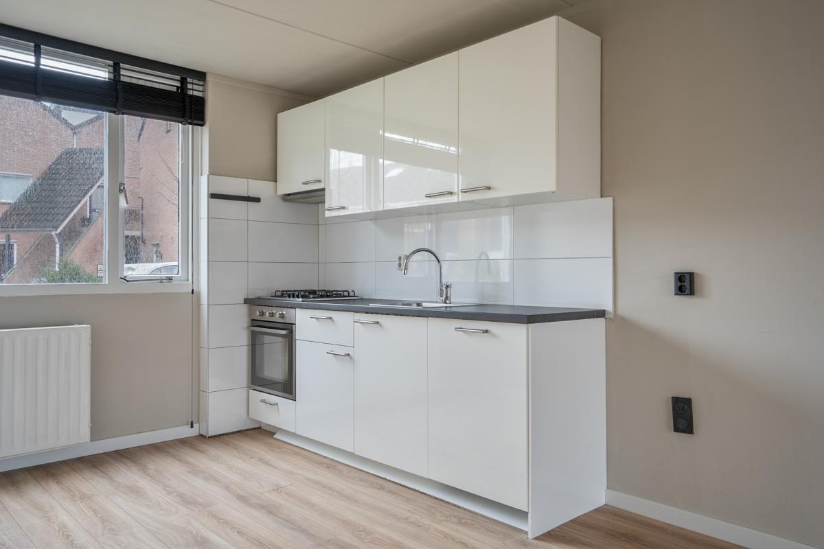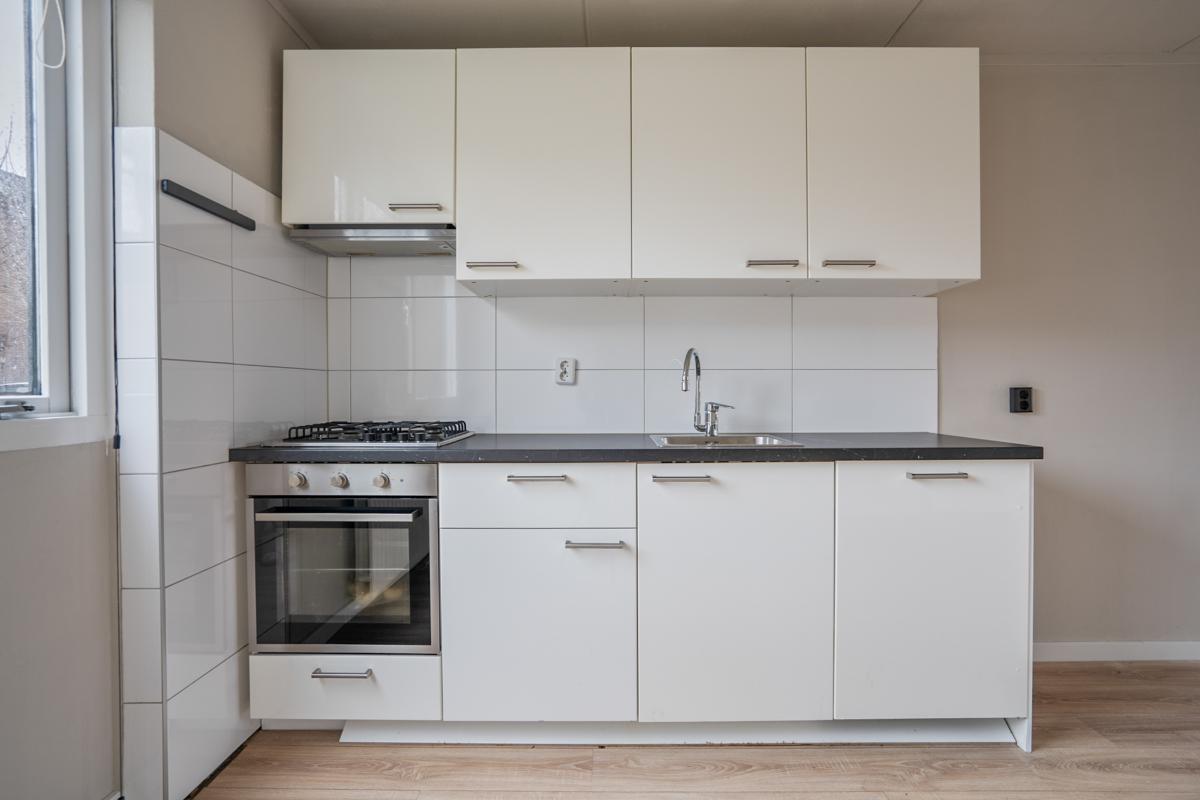 Licht en praktisch ingedeeld Op de begane grond vormt de woonkamer het hart van de woning: licht, praktisch en verrassend ruimtelijk door de diepe tuin. De keuken sluit prettig aan op de woonkamer, waardoor het geheel rustig en overzichtelijk aanvoelt. De keuken is eenvoudig, maar functioneel en vormt een prettige basis om naar eigen smaak te moderniseren.