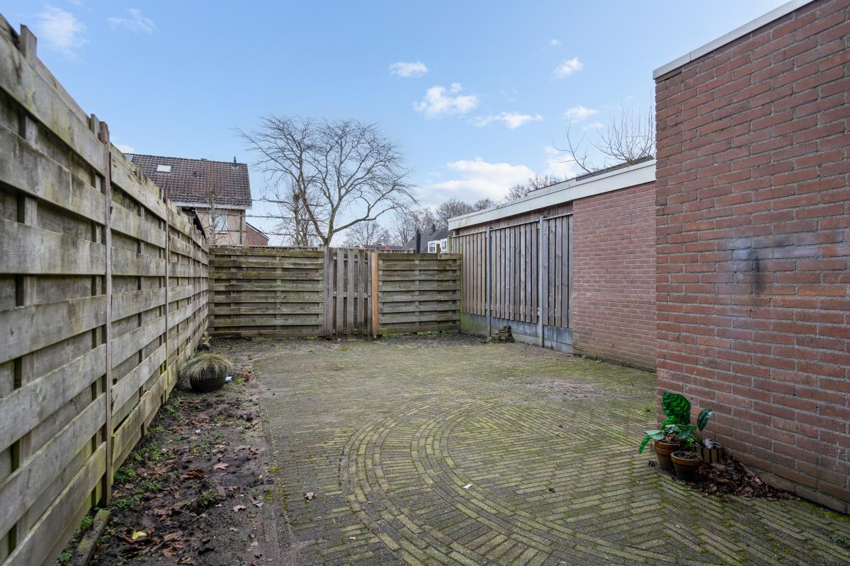 Tuin en berging Achter de woonkamer ligt de tuin. Deze is bereikbaar via de aangebouwde berging, ideaal voor fietsen en/of gereedschap. Buiten wacht een diepe achtertuin met volop mogelijkheden: zithoeken creëren, tuinieren of gewoon genieten van rust en privacy. Daarnaast loop je via de achterom zo de wijk in.