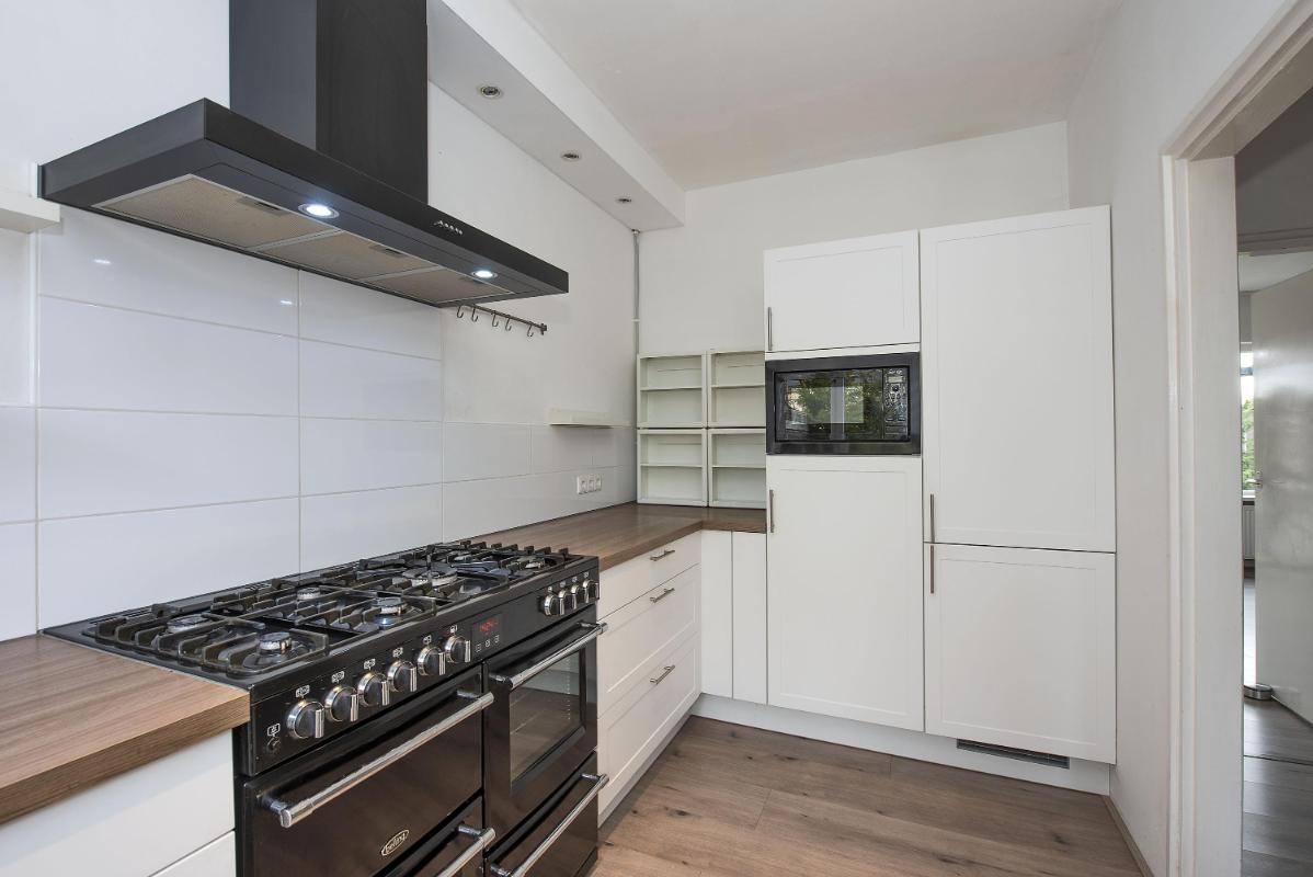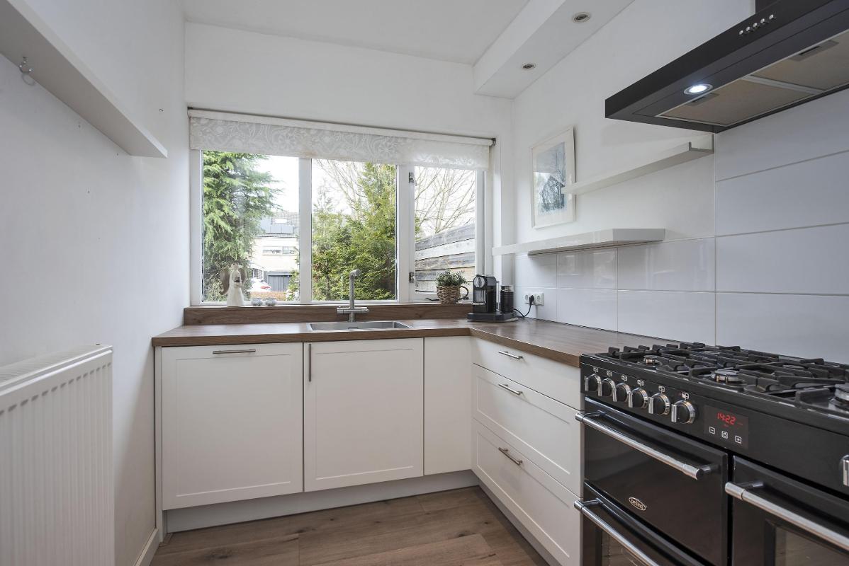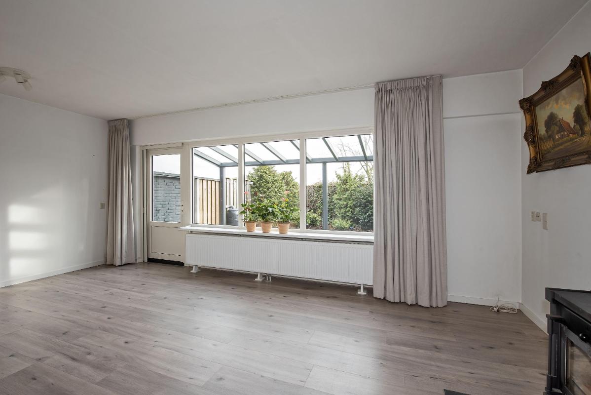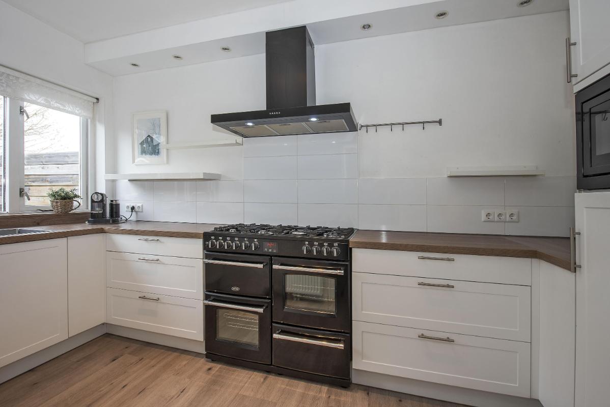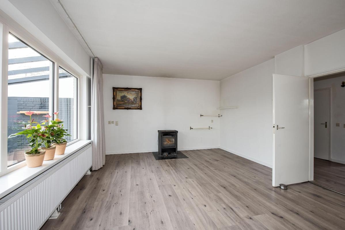 Een indeling die klopt Je komt binnen in de hal met meterkast, toilet en trapopgang. Vanuit de hal bereik je de keuken, die aan de voorzijde van de woning ligt. De keuken is ingericht met diverse inbouwapparatuur, waaronder een kookplaat, afzuigkap, oven en koelkast. De woonkamer ligt aan de achterzijde van de woning en is een fijne, lichte leefruimte dankzij het grote raampartij. Hier is volop ruimte voor een royale zithoek en een grote eettafel. De aanwezige kachel zorgt voor extra sfeer en warmte tijdens de koudere maanden. Via de woonkamer stap je direct onder de veranda, waardoor binnen en buiten hier mooi in elkaar overlopen.