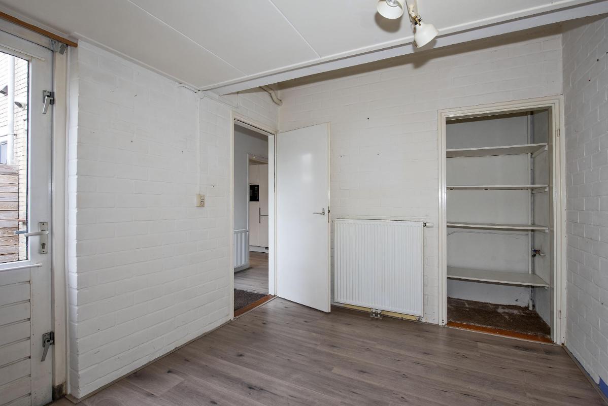 Indeling Begane grond: entree, hal met toilet en meterkast, woonkamer met toegang tot de veranda, keuken met inbouwapparatuur, bijkeuken of kantoorruimte. Eerste verdieping: overloop, drie slaapkamers met ingebouwde kastruimte, badkamer met douche, toilet en wastafel. Tweede verdieping: overloop en ruime slaapkamer met diverse gebruiksmogelijkheden.