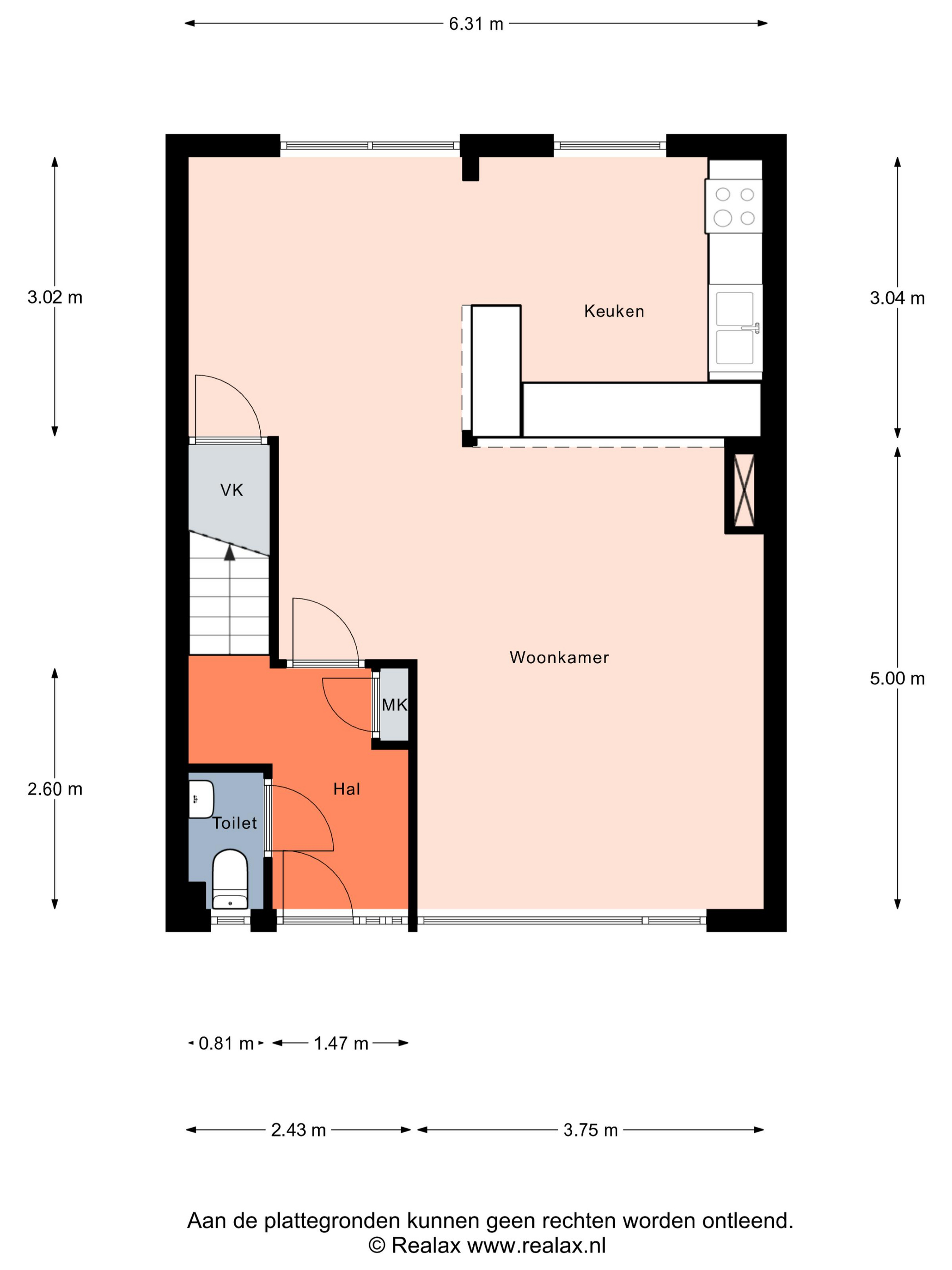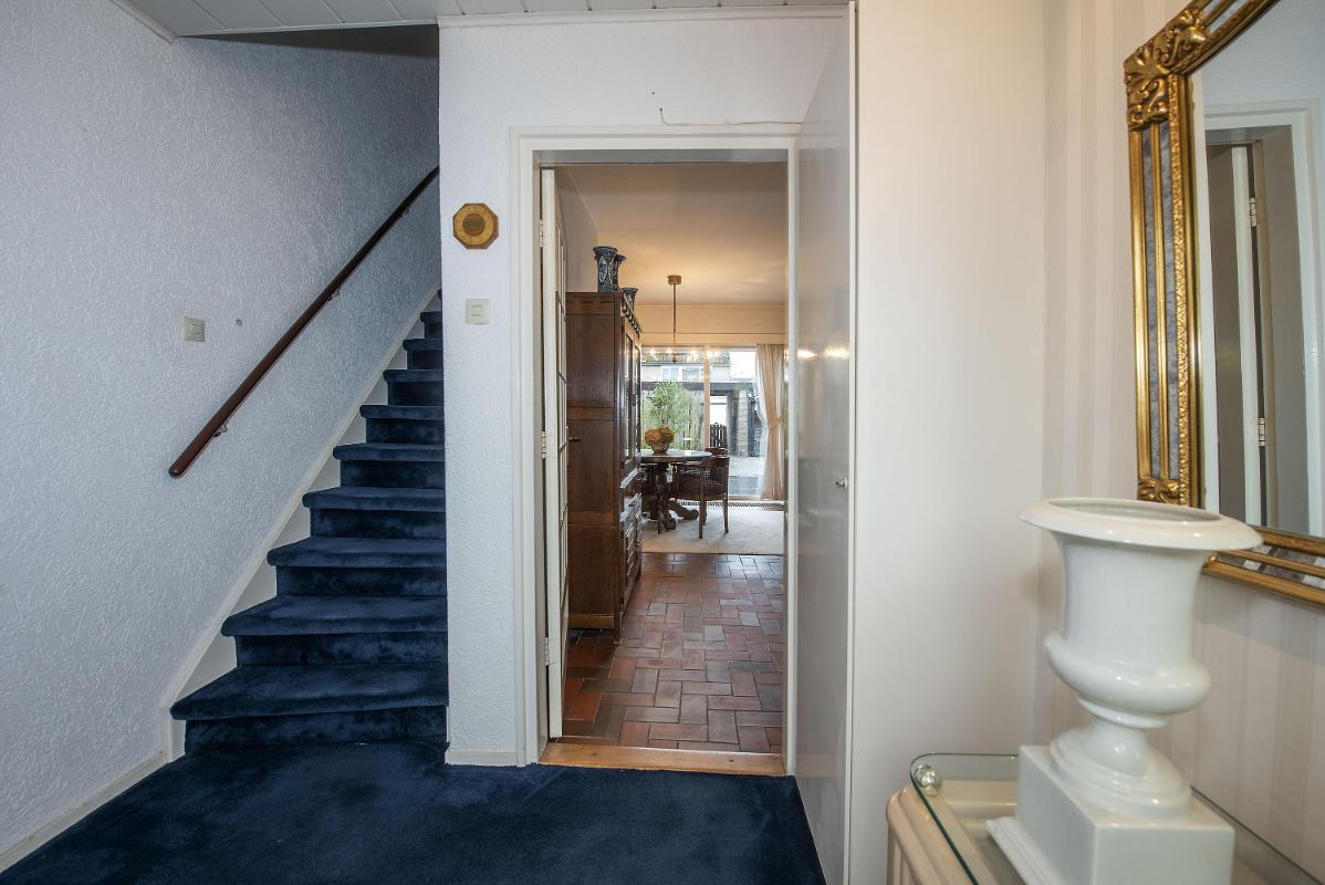Ruimte, licht en een sterke basis Je komt binnen in de hal, waar het toilet, de meterkast en de trapopgang te vinden zijn. Vanuit hier loop je door naar de woonkamer aan de voorzijde van de woning: een brede, lichte leefruimte met zicht op de rustige straat en voldoende plek voor een comfortabele zithoek waar je na een lange dag lekker kunt landen.