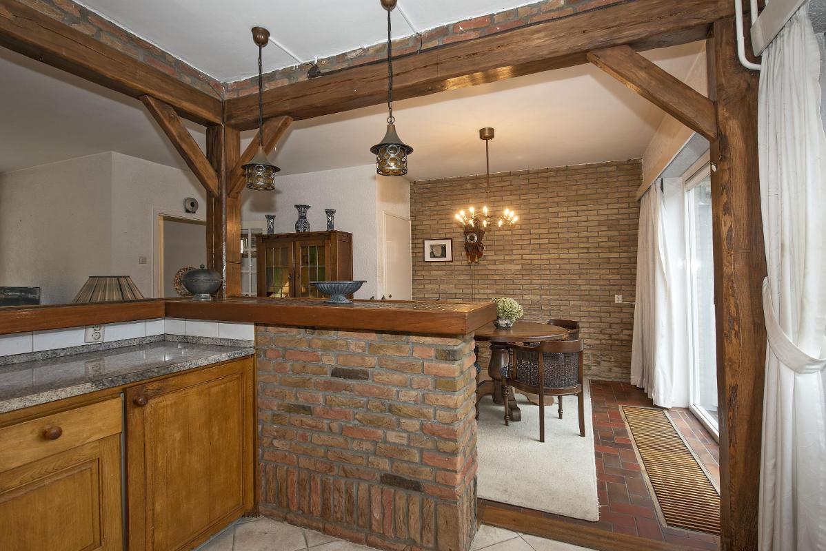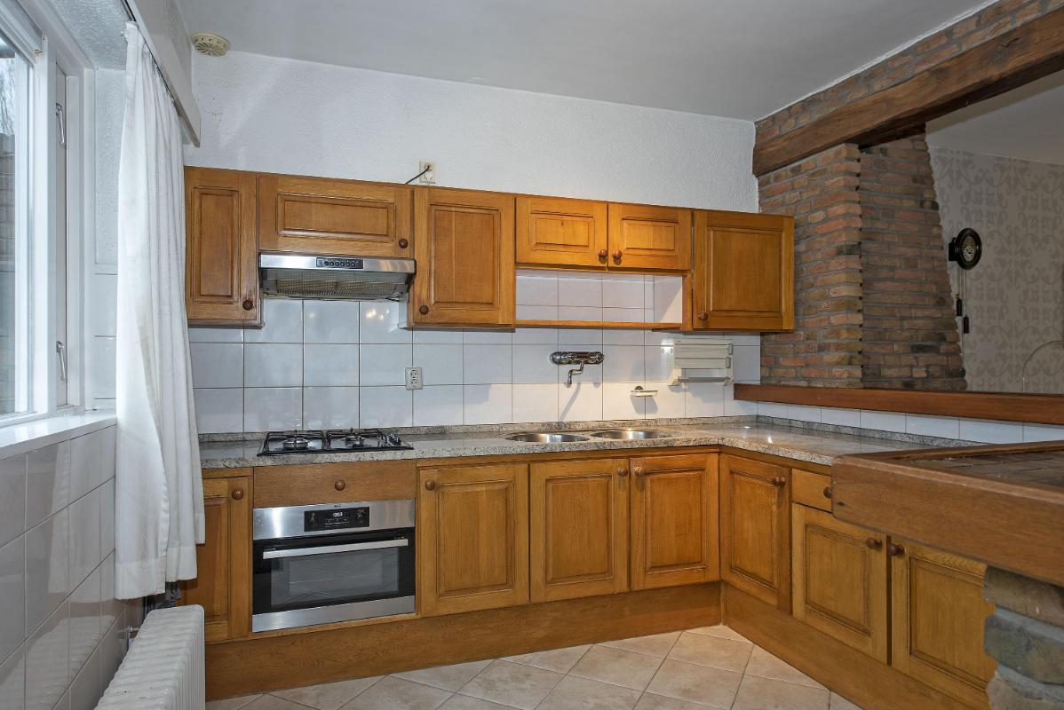 Aan de achterzijde ligt de keuken, met voldoende plek voor een gezellige eethoek. De keuken is eenvoudig maar functioneel; een fijne basis waar je later helemaal jouw eigen smaak in kunt laten terugkomen. Vanuit hier loop je ook zo de achtertuin in, ideaal op een zonnige dag, wanneer binnen en buiten vanzelf één geheel worden.