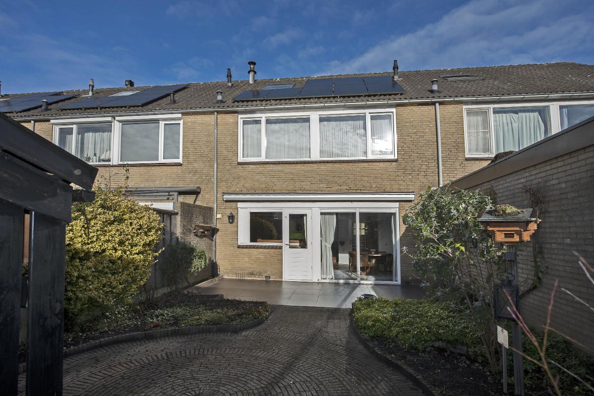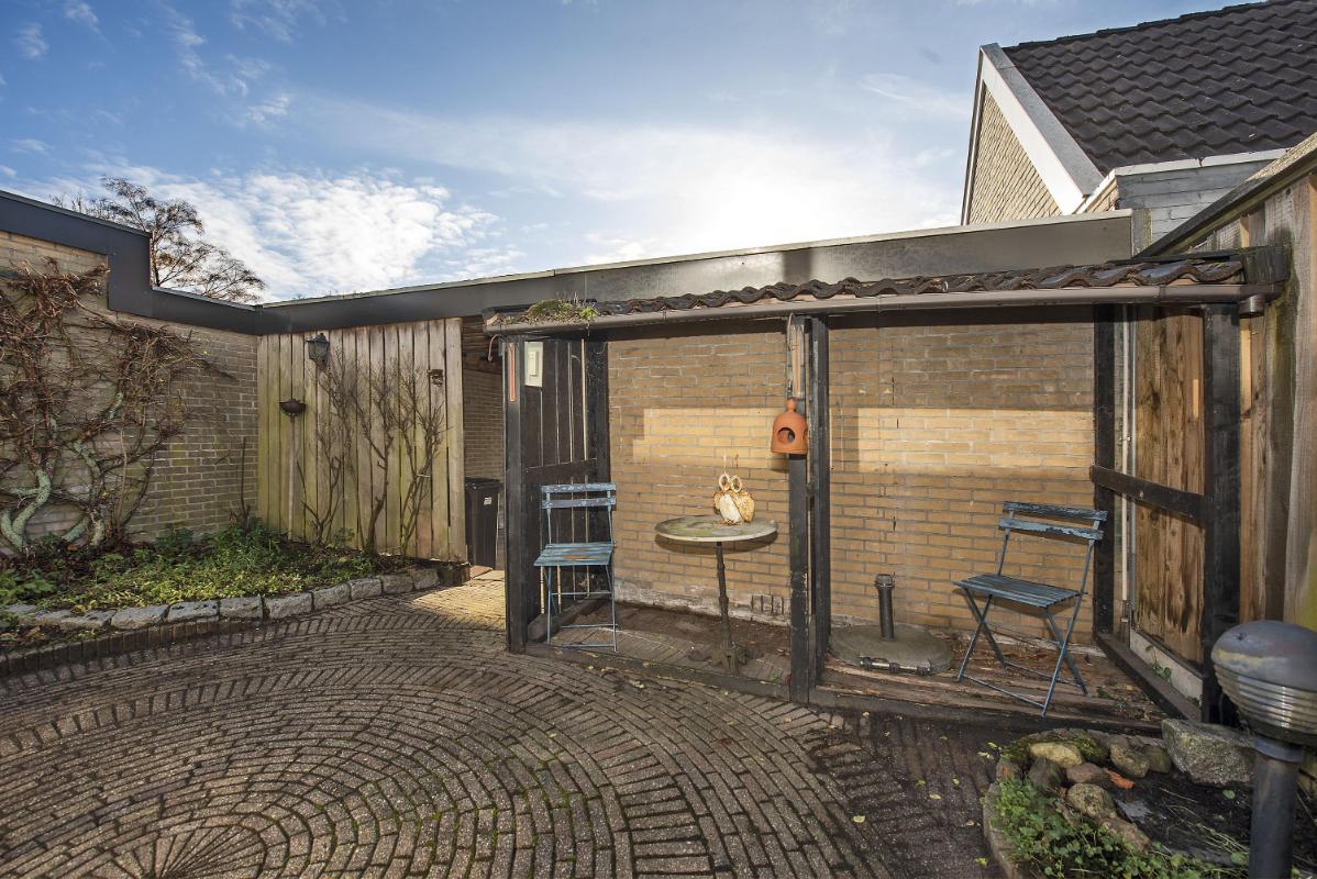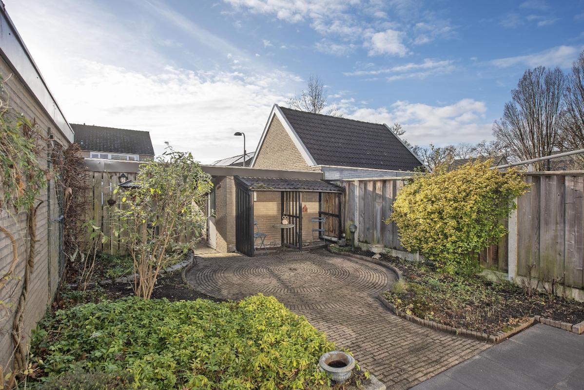 Buiten wacht een diepe achtertuin: een plek waar je volop kunt variëren met zitjes, groen of speelruimte. Helemaal achterin vind je de garage met daaraan vast de carport, plus een praktische achterom. Erg prettig voor fietsen, tuinspullen of gewoon een makkelijke route naar achteren.