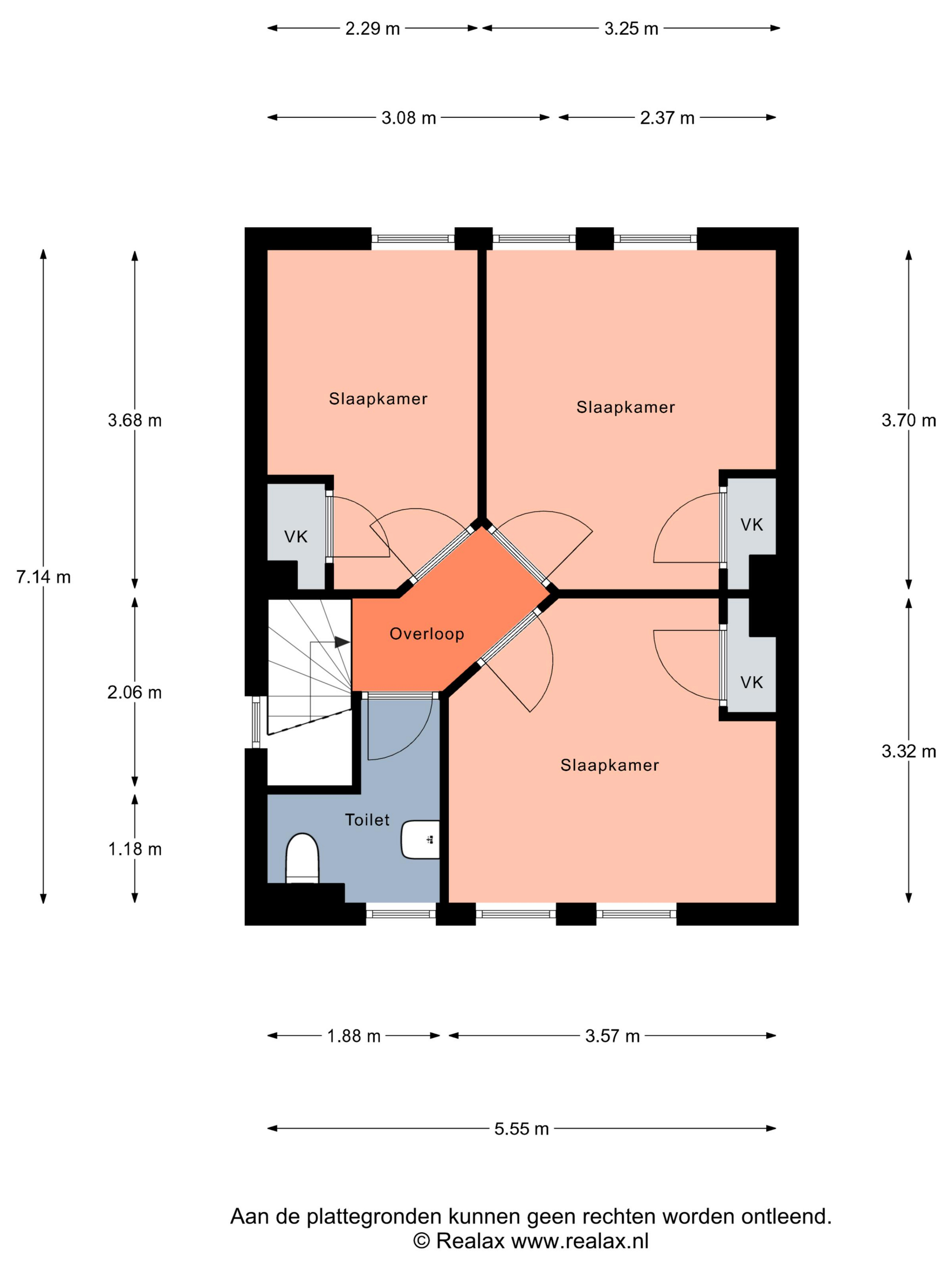 Lichte en fijne slaapkamers Op de eerste verdieping bevinden zich drie slaapkamers, stuk voor stuk licht en prettig van formaat. Fijne kamers die je eenvoudig inricht als slaap, werk of logeerruimte. Het separate toilet op deze verdieping is een comfortabel extraatje en de vaste kasten zorgen voor praktische bergruimte